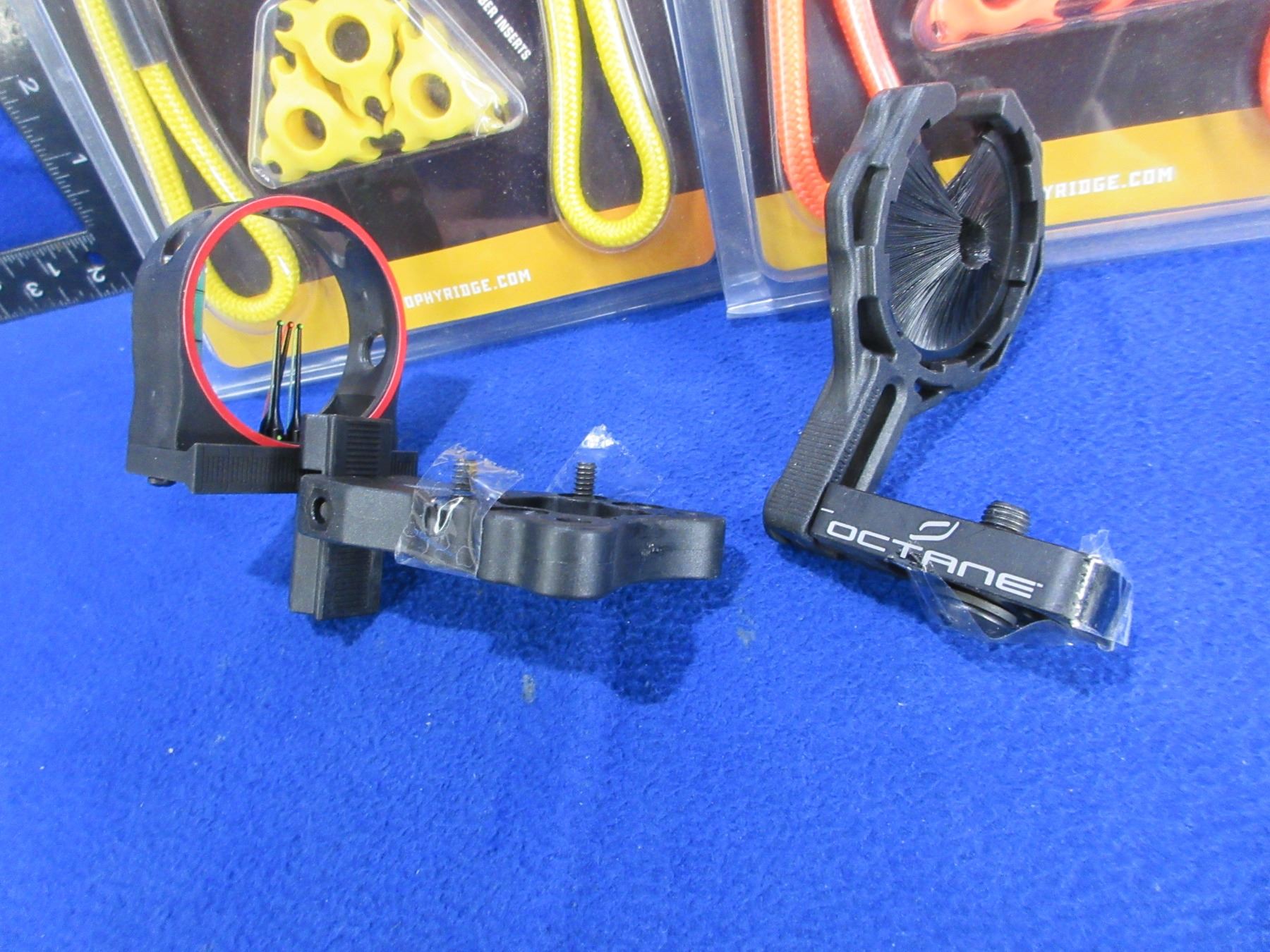 NEW - Octane 3 Pin Bow Sight, Octane Whisker Biscuit, 2 Trophy Ridge Static Color Kits (Orange & Yellow)