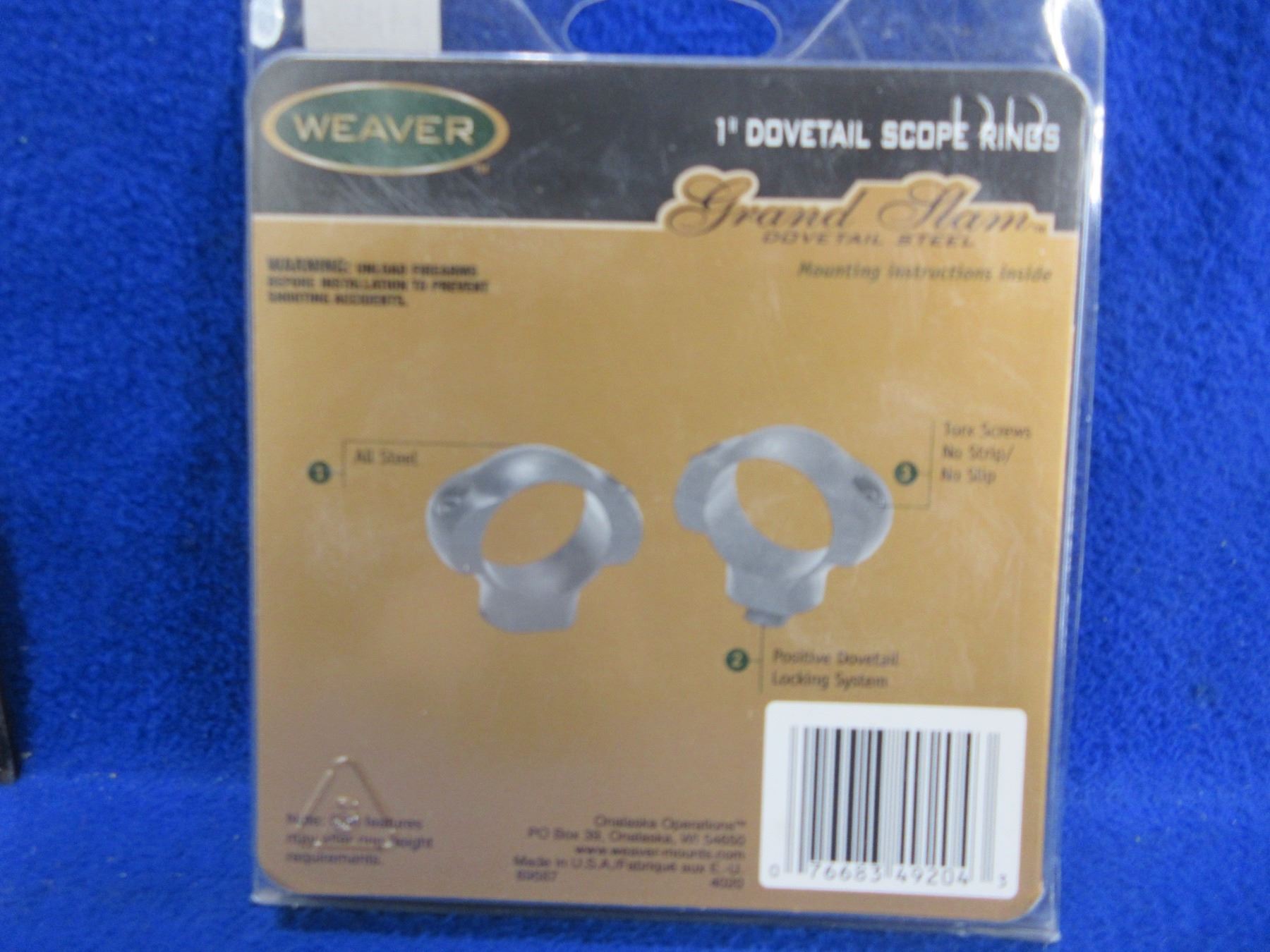NEW - Weaver Grand Slam 1" High Dovetail Rings - Black, Steel # 49204