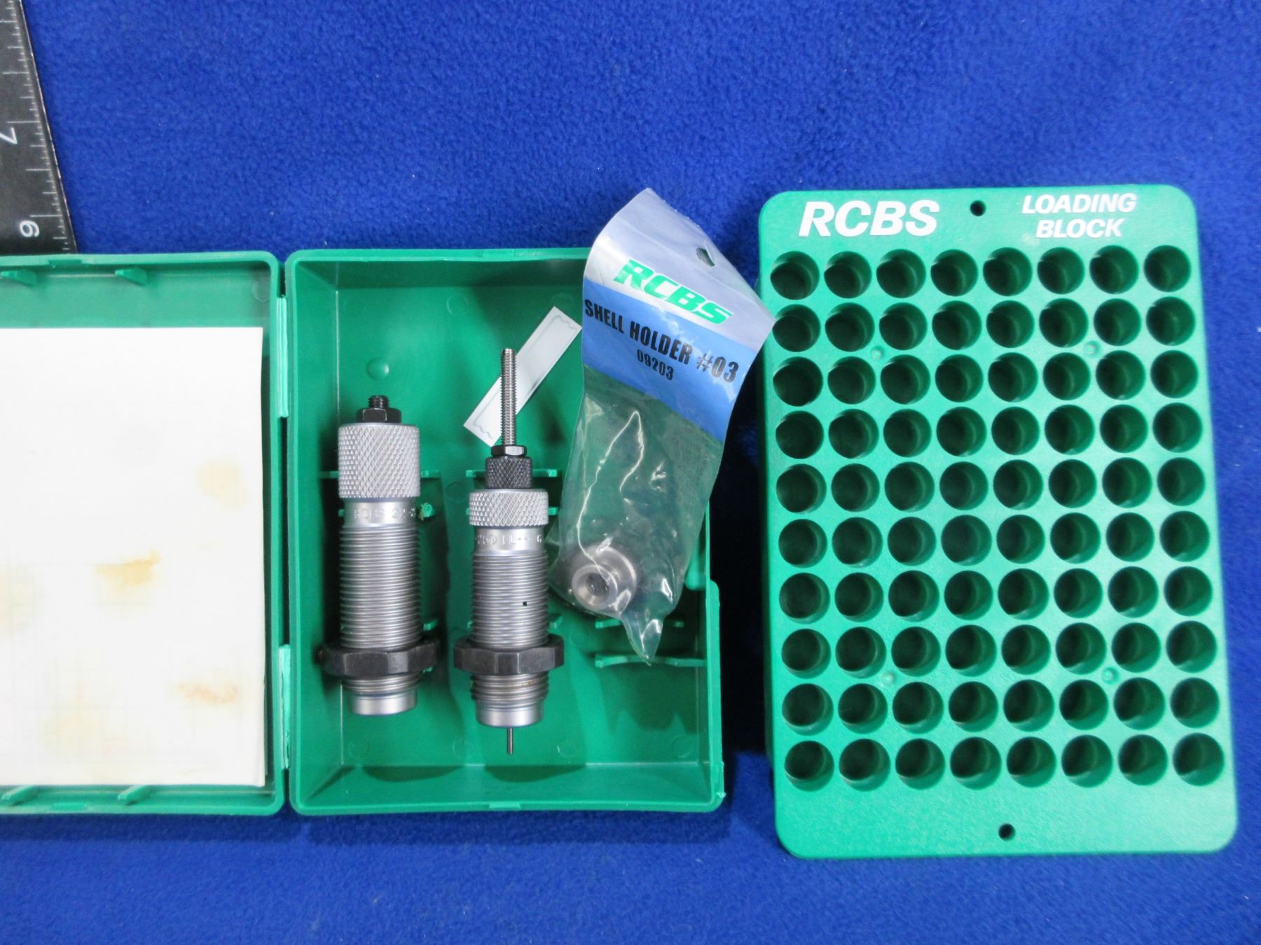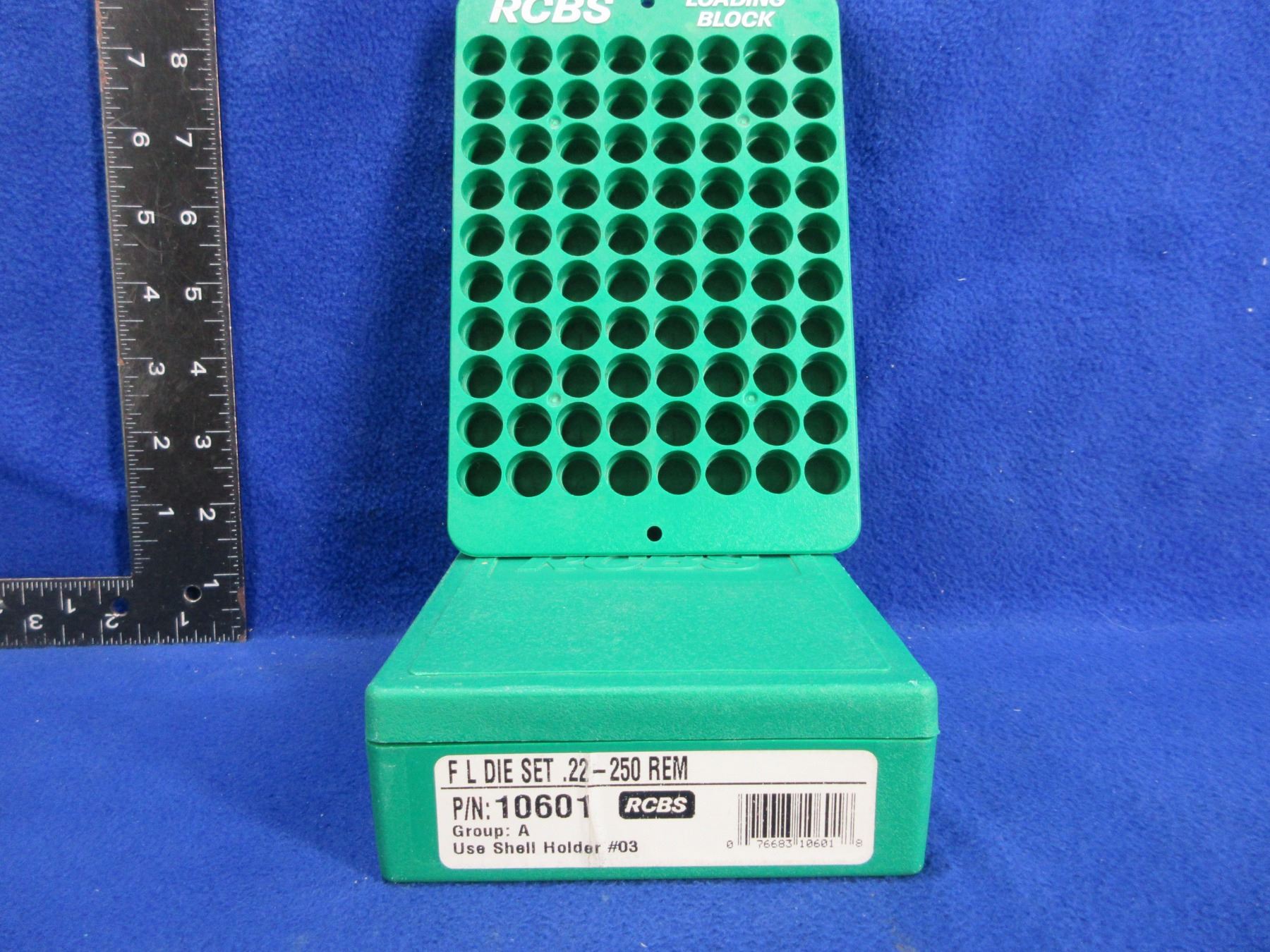 RCBS 22-250 Rem. FL 2 Die Set, Shellholder # 3 & RCBS Loading Block - Die set and shellholder appear unused