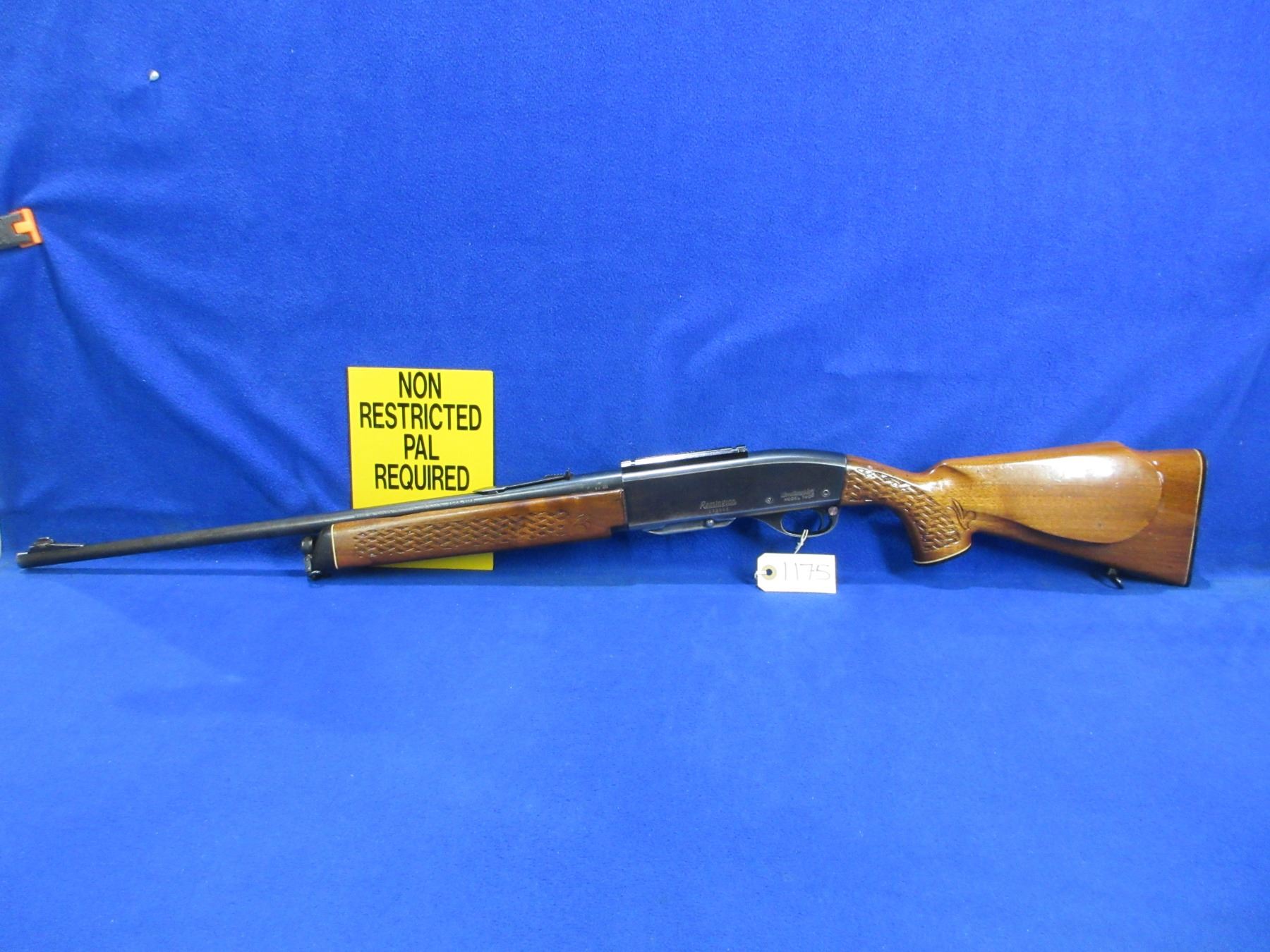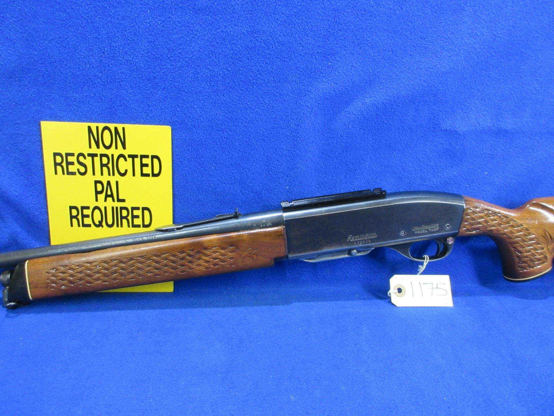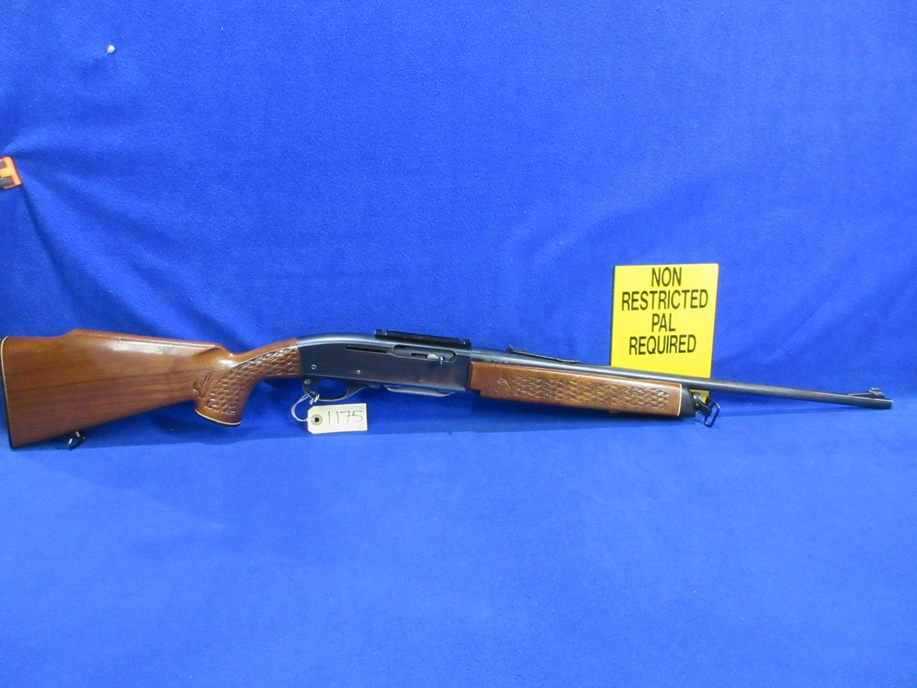 Non-Restricted - Remington Woodsmaster Model 740 in 30-06 Sprg - This rifle is in very nice condition with basket-weave checkering. This semi-auto rifle with removable magazine appears to be in good to very good working order. Barrel is 21 3/4", rifling is good too very good , bluing is good but turning grey, has both sights and Weaver style base, high gloss stock and forearm are good with usage marks, butt plate good, comes with swivels. Ser # 130988