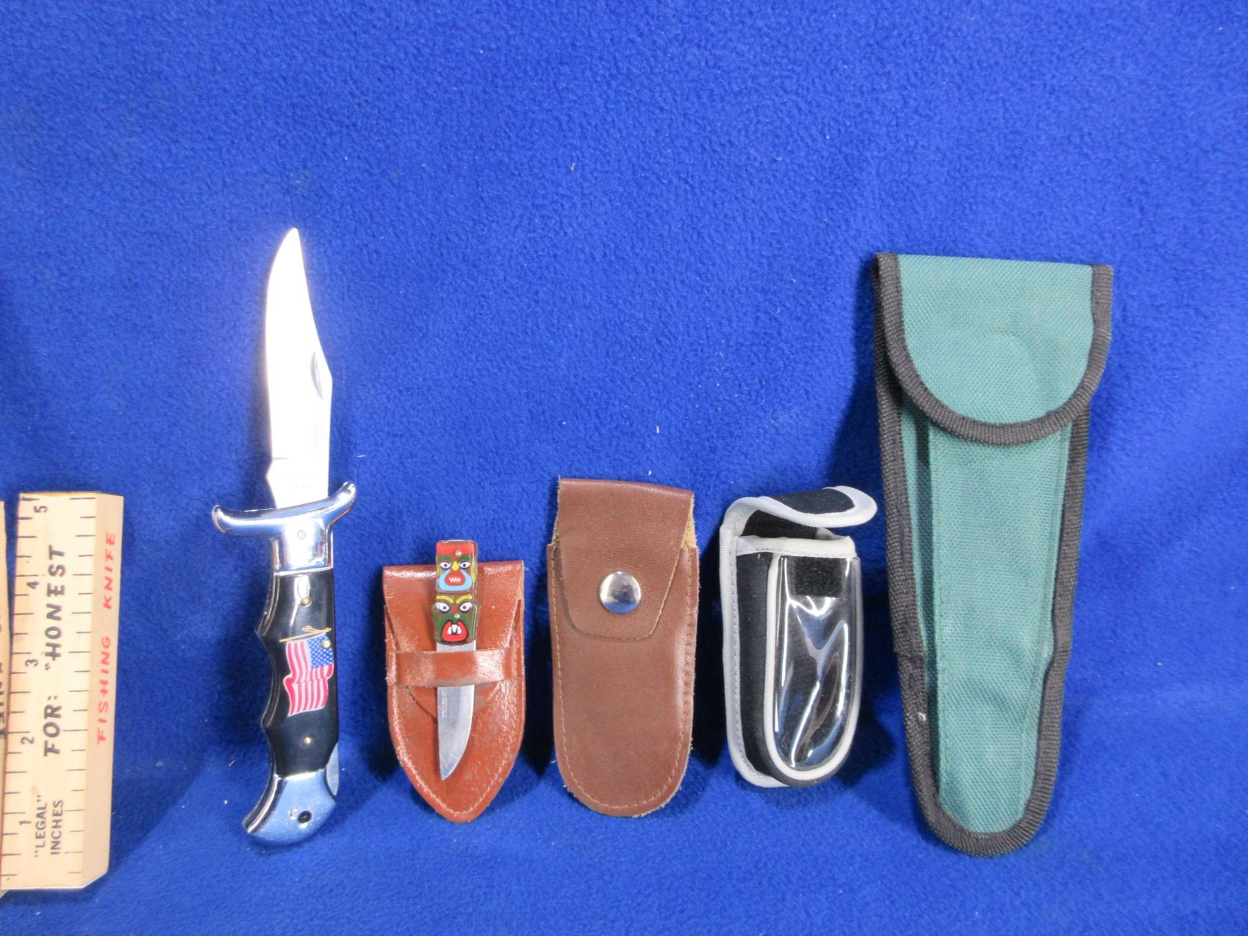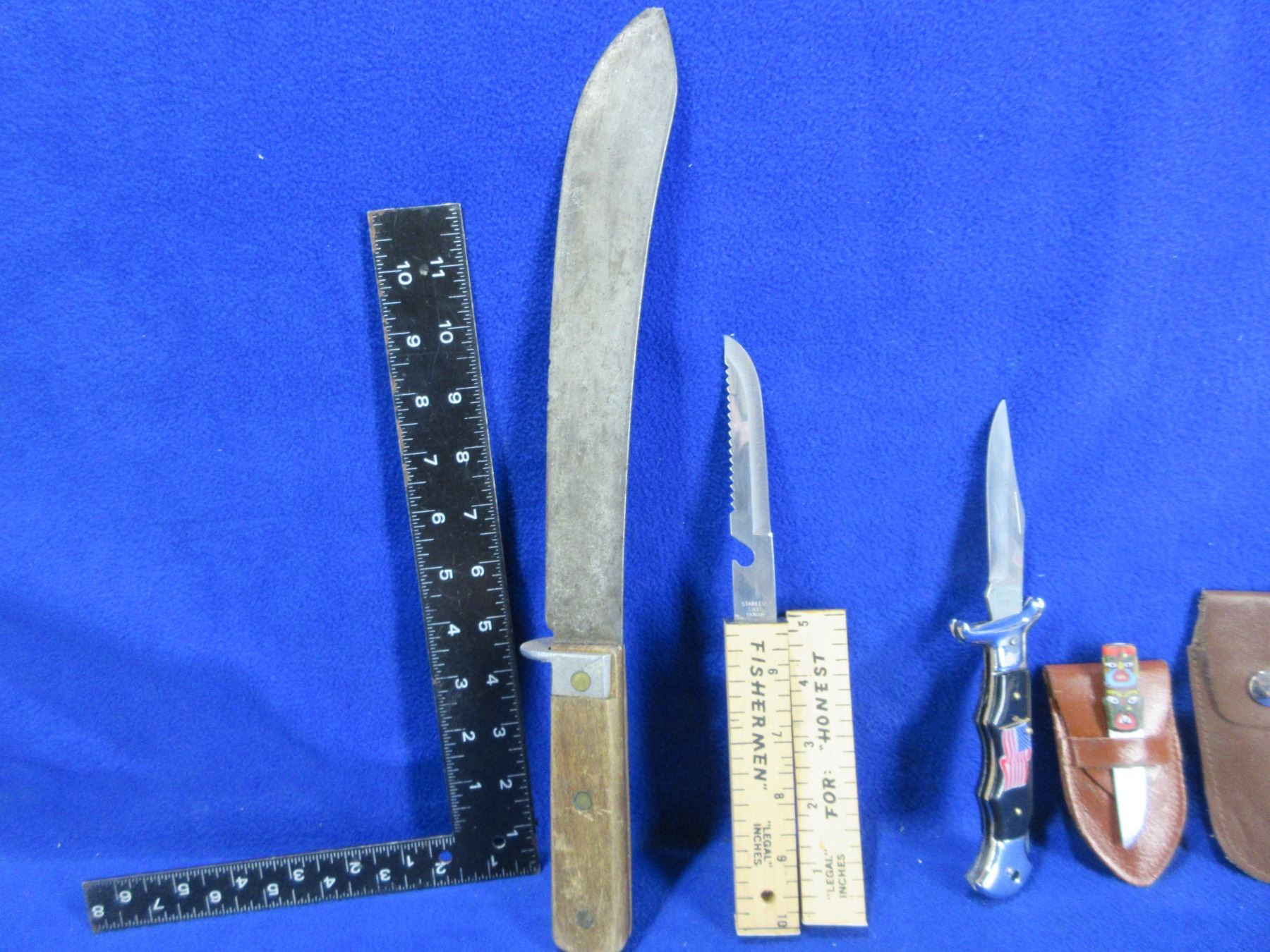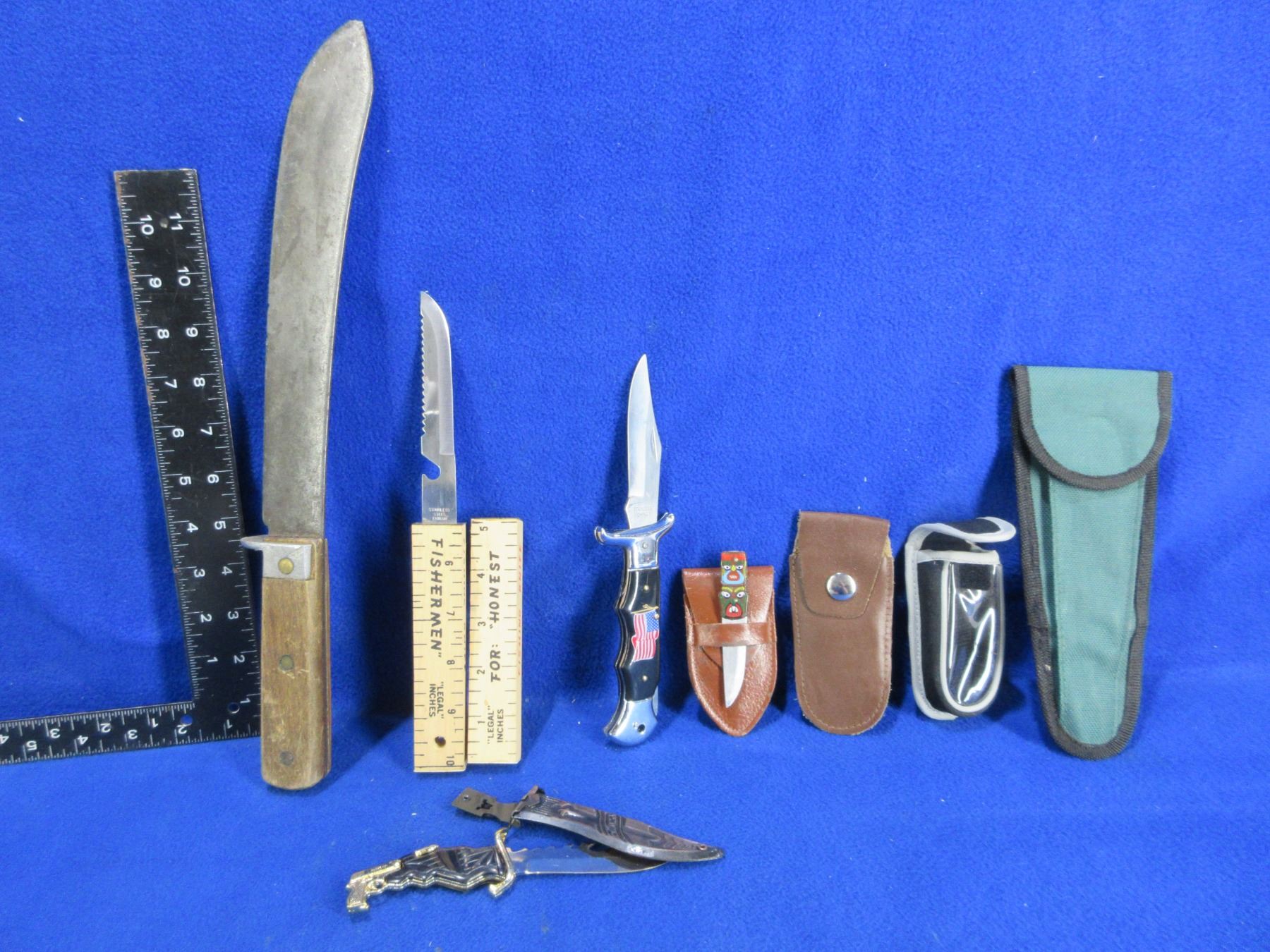 4 Assorted Knives, Machete (10" Blade) & 3 Extra Sheaths