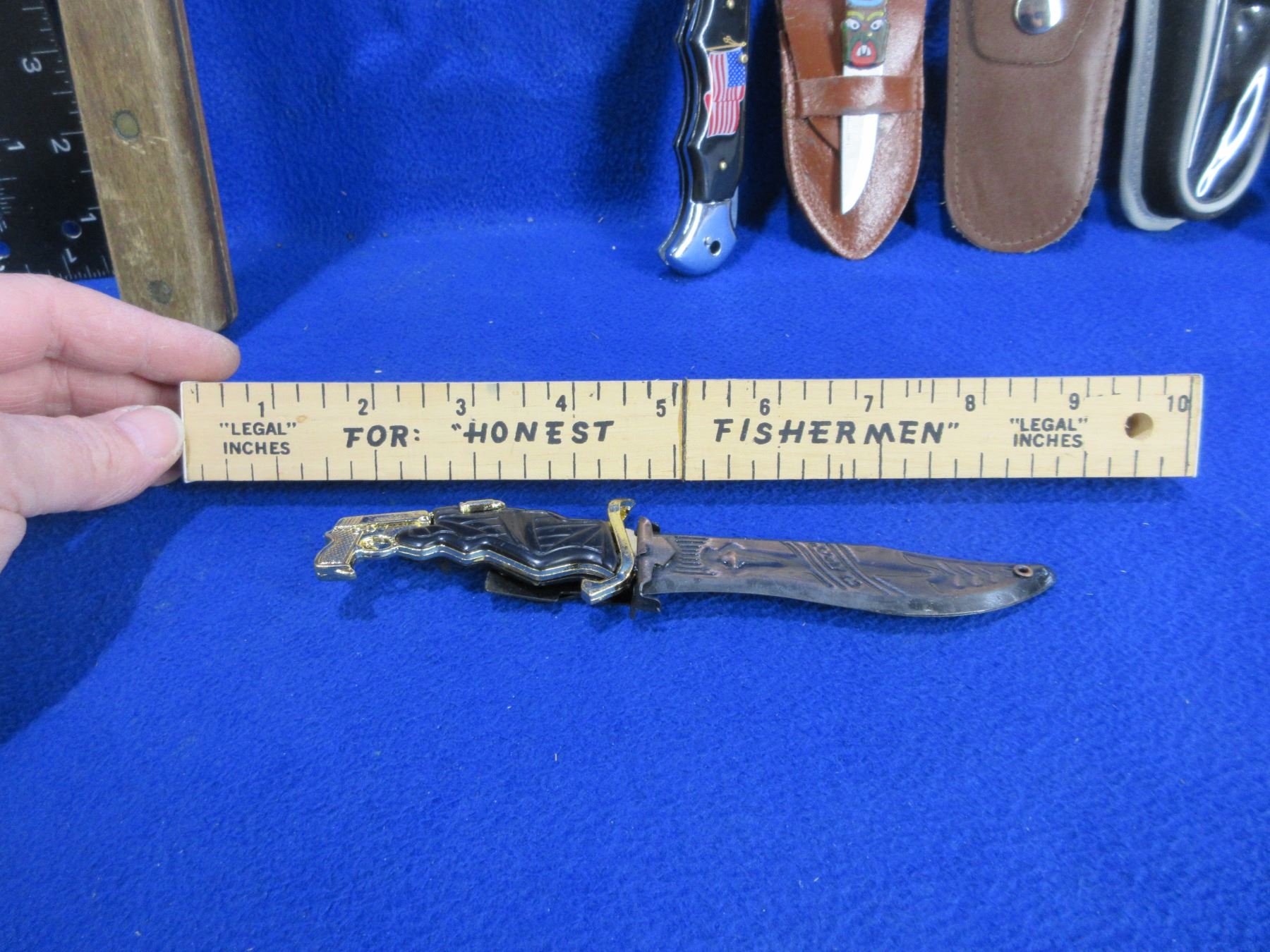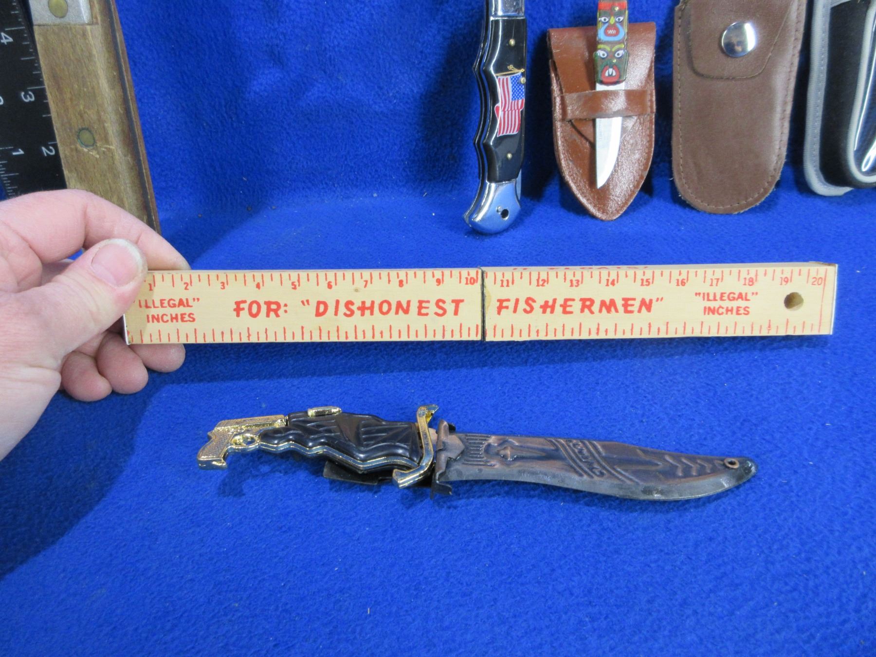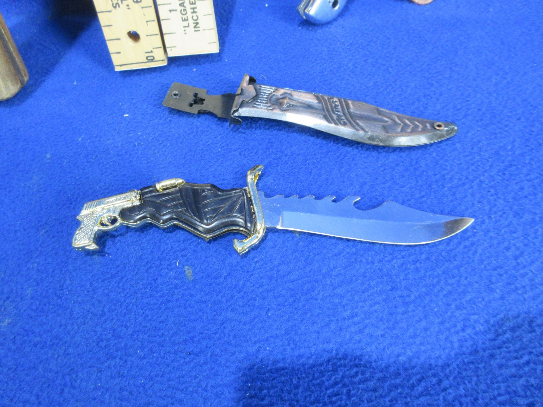 4 Assorted Knives, Machete (10" Blade) & 3 Extra Sheaths