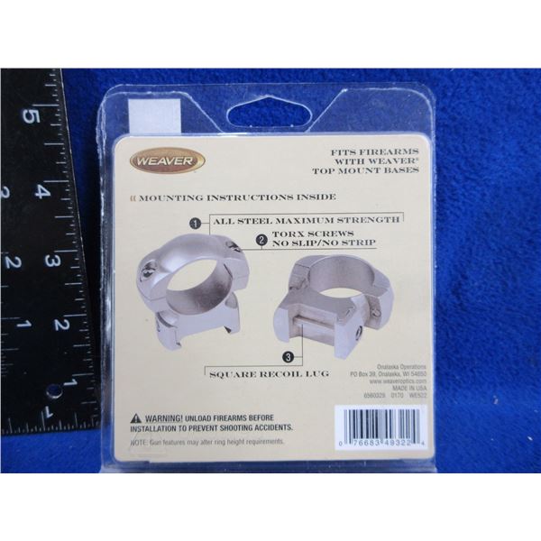 NEW - Weaver Grand Slam 1" High Top Mount Rings - Silver, Solid Steel # 49322