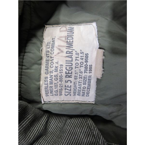 Peerless Garments Ltd. Canadian Heavyweight Combat Coat - Size 5 Regular/Medium - 67.1" to 71.0" Height, 37.6" to 41.5" Breast - Comes with a removable insulated liner.