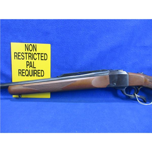 Non-Restricted - Ruger No. 1 in 300 Win Mag - This rifle appears to be in like-new condition. This single shot under lever falling block rifle appears to be in very good working order. Barrel is 26", rifling is very good, bluing is good to very good, has no sights but has integral Ruger base, stock and forearm are very good, rubber butt plate very good, comes with swivel studs. Ser # 132-20369
