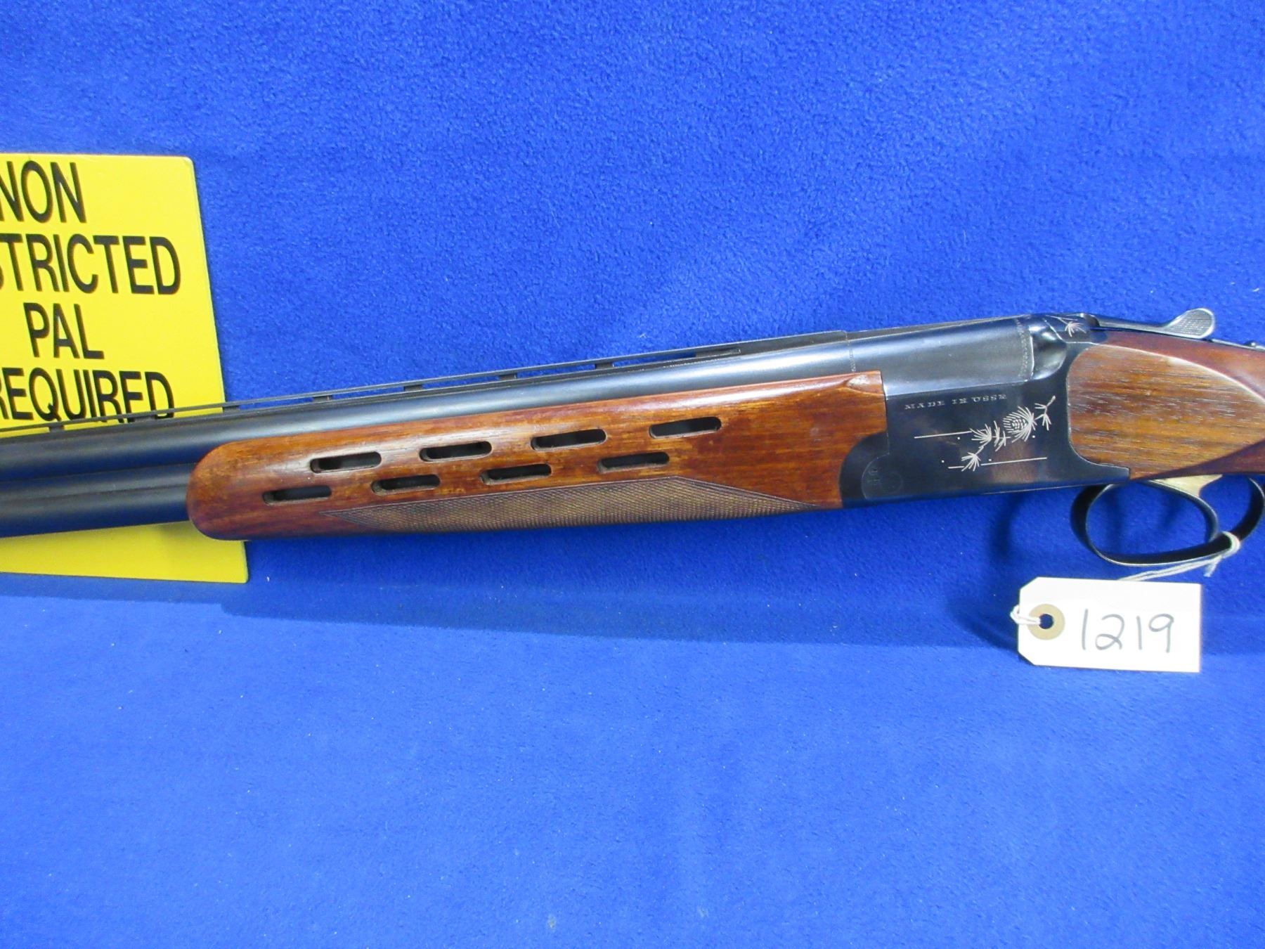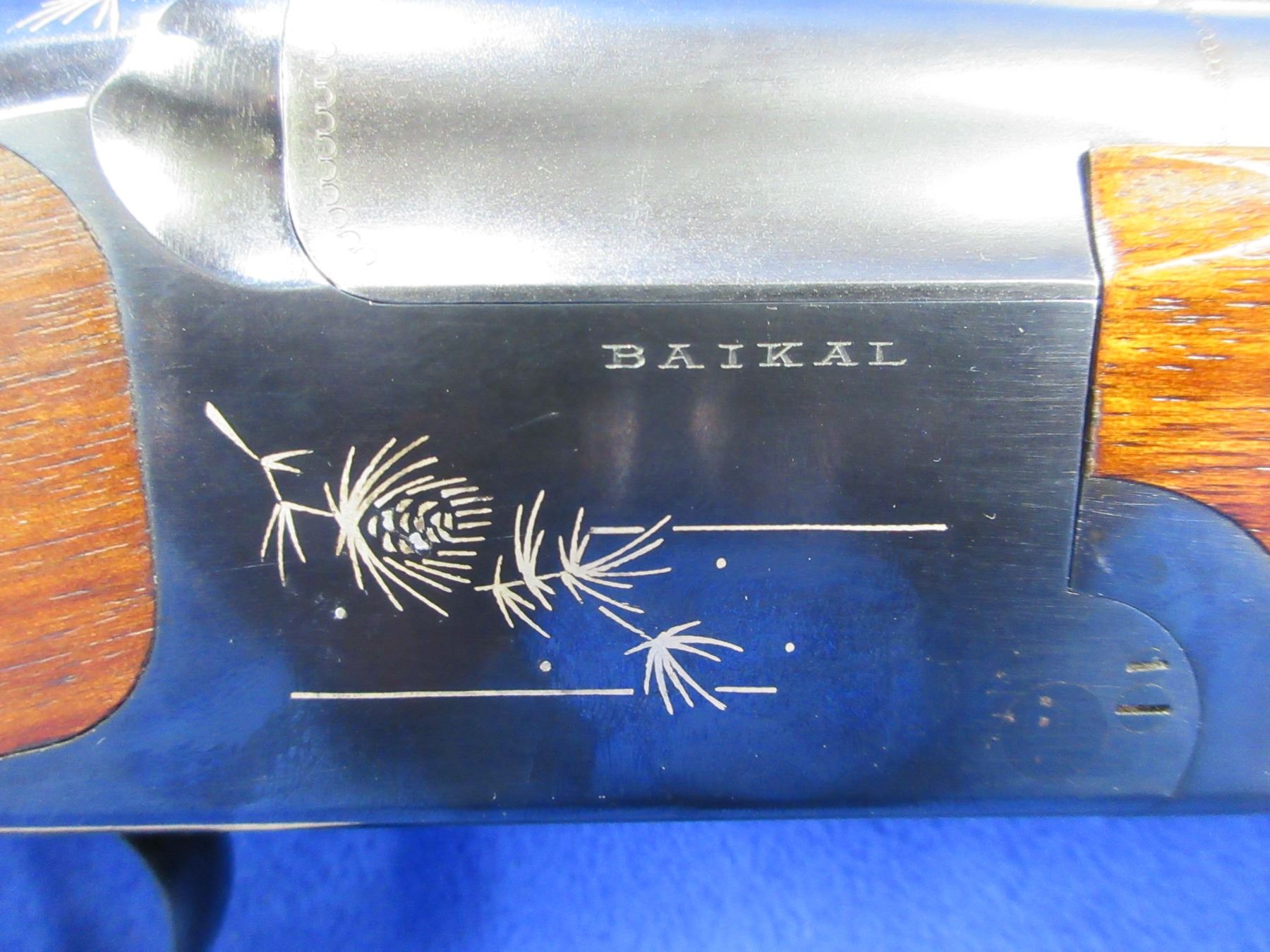 Non-Restricted - Baikal Model IJ-25 in 12 Ga. 2 3/4" - Marked "Made in USSR", this over/under shotgun with single trigger and extractor is in like new condition and action is nicely engraved. Vent rib barrels are 25 5/8", bores are very good, bluing is good to very good, has bead front sight, stock is good to very good, forearm is good to very good, rubber recoil pad good. Ser # KN-218