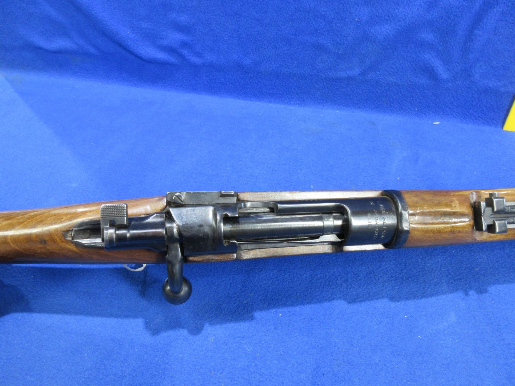 Non-Restricted - Turkish Mauser 1938 in Appears to be 8mm - Anyone can appreciate this rifle. This bolt action rifle with floorplate magazine appears to be in good to very good working order. Barrel is 22", rifling is good but dark - may need wet cleaning, bluing is good to very good, has both sights, full wood stock is good to very good with many usage marks, metal butt plate good, comes with swivels. Ser #A55389H
