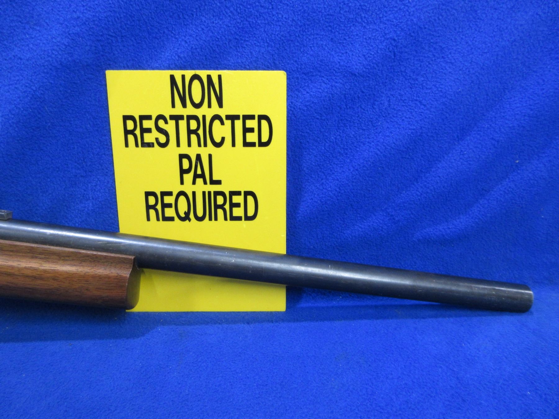 Non-Restricted - BSA Martini Target Rifle in 22 LR - Nice grain and condition on this one! This single shot falling block rifle appears to be in good to very good working order. Heavy barrel is 24 1/2", rifling is good to very good, bluing is fair to good with many scratches, has no sights but has bases that appear to be for Unertl scope, stock and forearm are good to very good with minor usage marks, rubber butt pad good. Ser # 93/6909