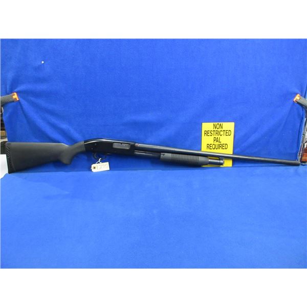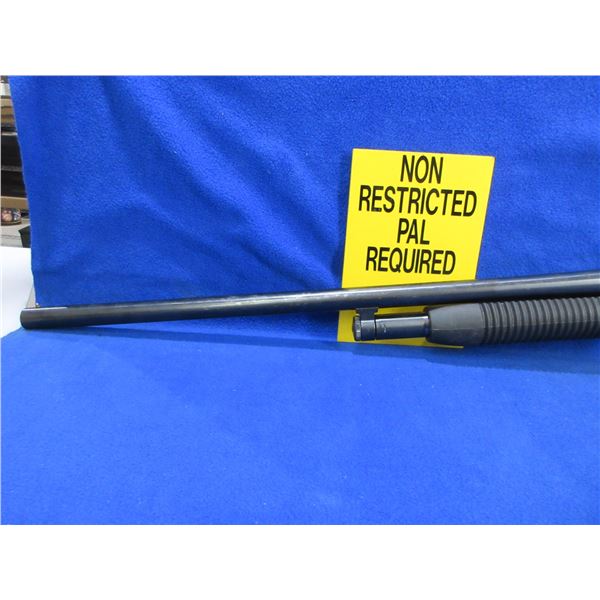 Non-Restricted - Mossberg Maverick 88 in 12 Ga. 2 3/4" / 3" - This pump action shotgun appears to be in good to very good working order. Barrel is 28", bore is good to very good, bluing has light pitting on the barrel, black finish on action is very good, has bead front sight, synthetic stock is good with usage marks, synthetic forearm is good with usage marks, rubber recoil pad good, swivel studs are missing. Ser # MV17458E