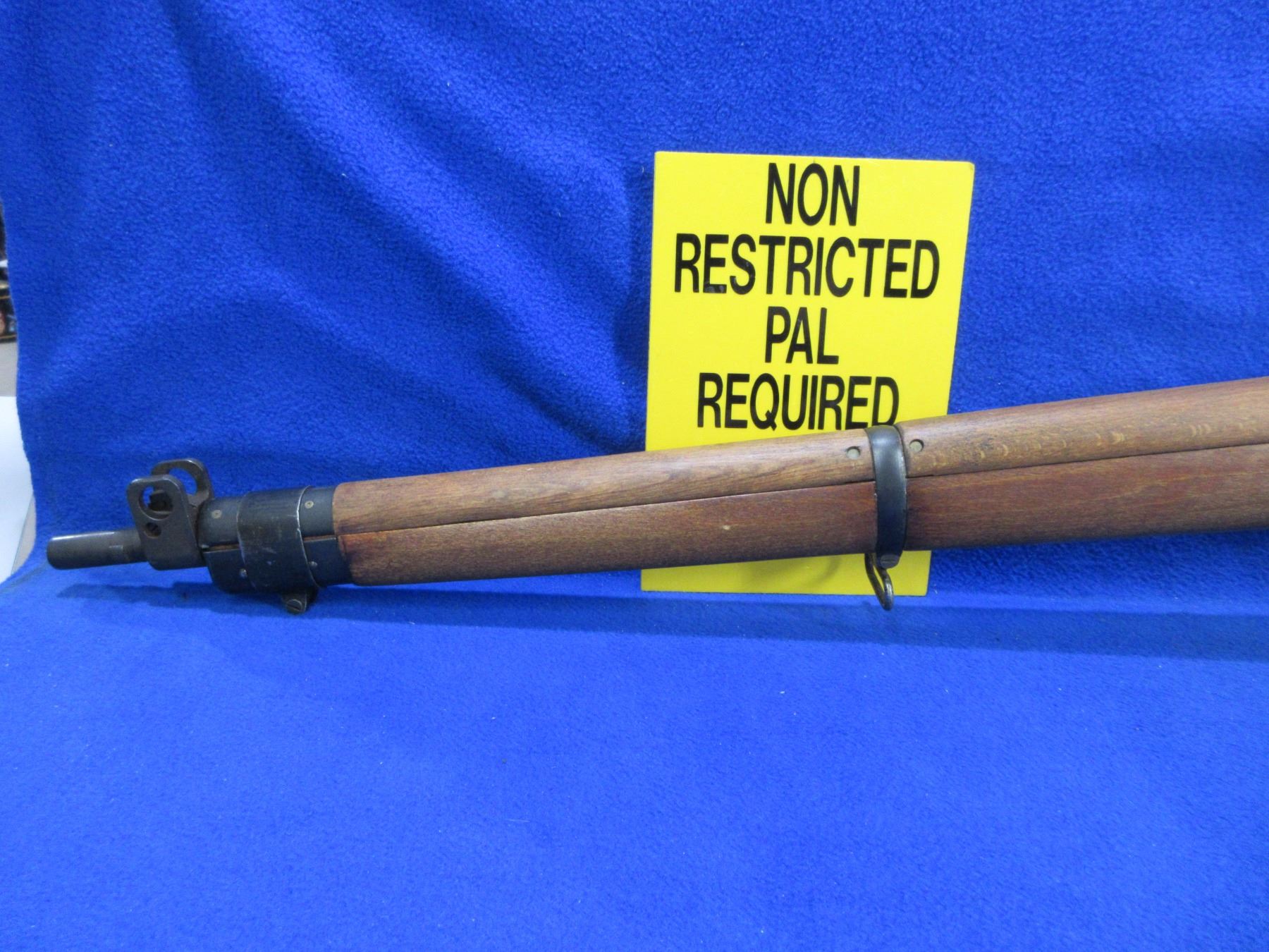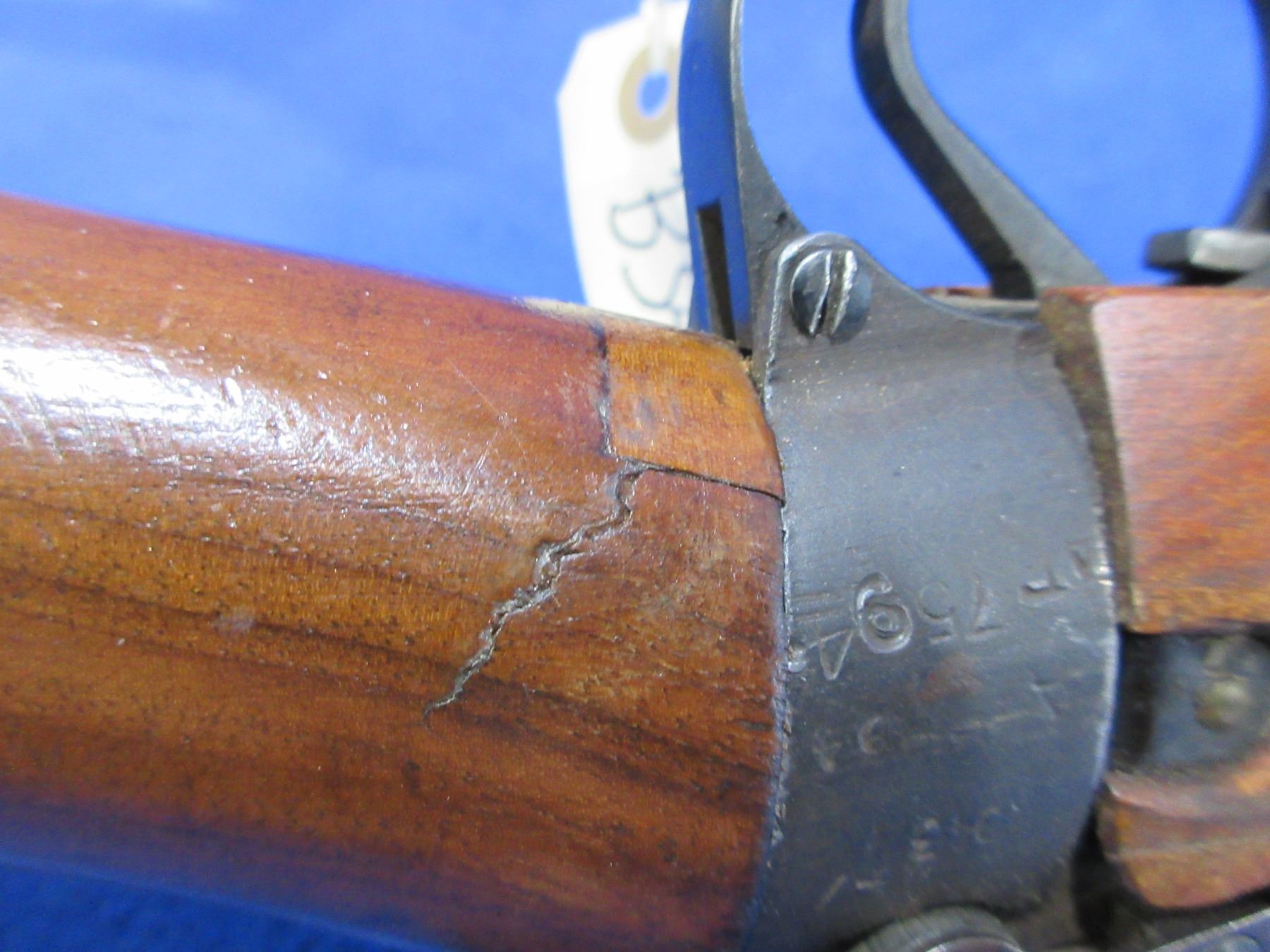 Non-Restricted - Lee Enfield No. 4 Mark I in 303 British - Marked "1943". This bolt action rifle with removable magazine appears to be in good to very good working order. Barrel is 25", rifling is good to very good, bluing is good, has both sights, full wood stock has a crack in the wrist area and a crack on left side of action (both appear repaired), metal butt plate, comes with swivels. Ser #AF7594