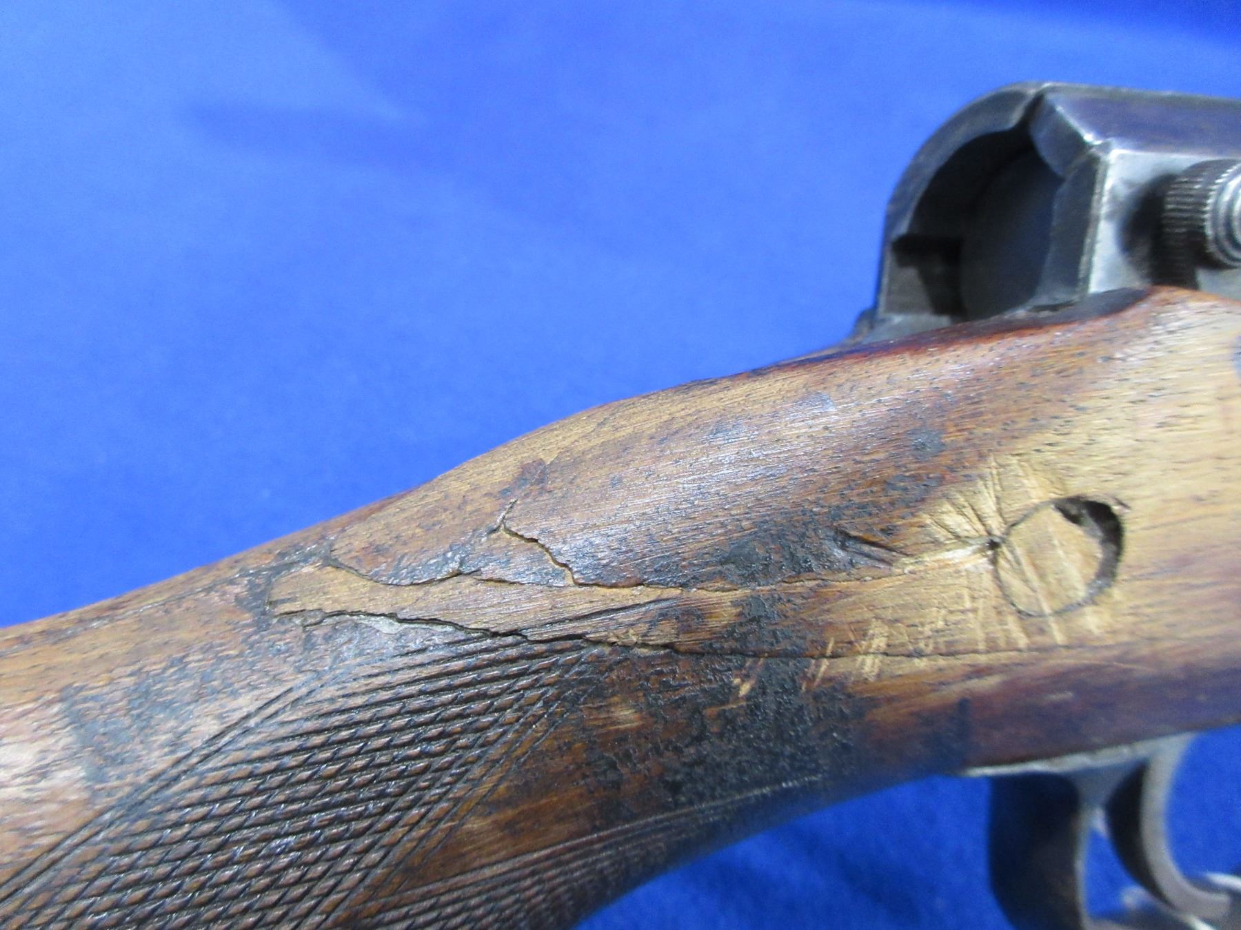Non-Restricted - Remo Popular in 12 Ga. 2 1/2" - This bolt action shotgun with internal magazine appears to be in working order but should not be fired as stock is broken and appears safety is not working. Barrel is 29 1/2", bore is good, bluing is turning grey or gone, has bead front sight, stock is broken at the wrist area and has a large crack on the forearm, metal butt plate. Ser # 9467