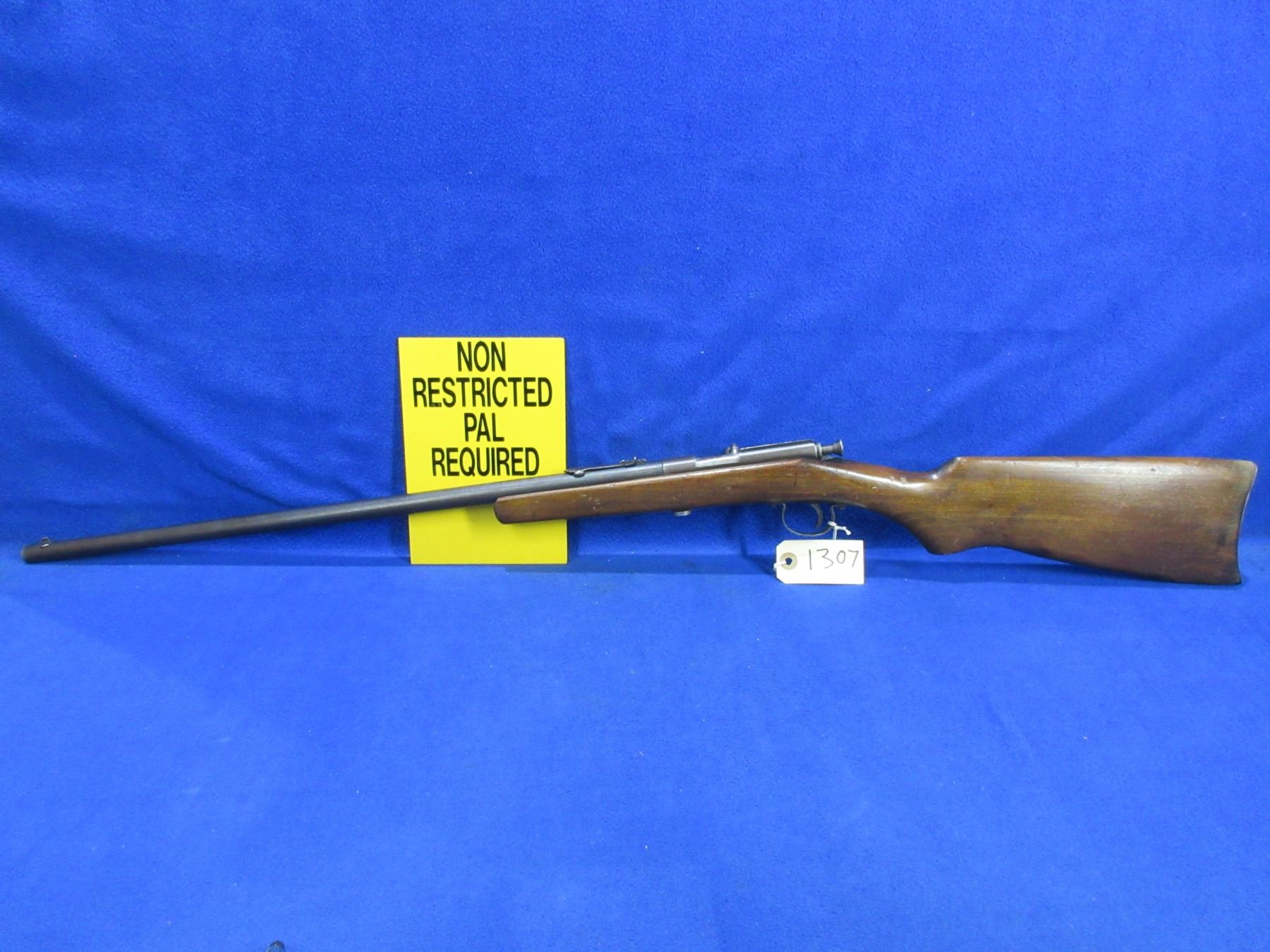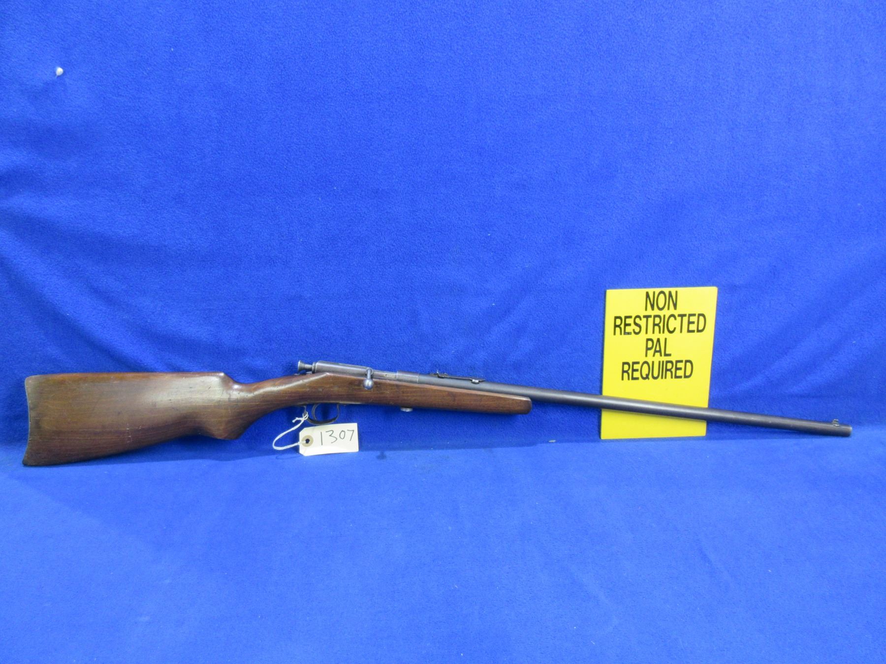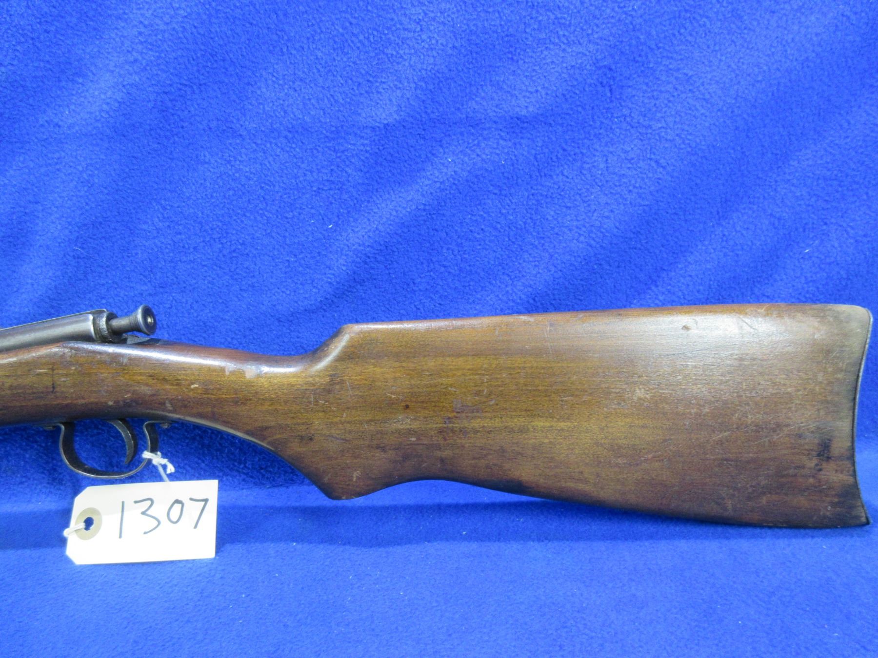 Non-Restricted - Trail Blazer Single Shot in 22 S/L/LR - This single shot bolt action rifle appears to be in good to very good working order. Barrel is 22", rifling is good to very good, bluing is good as is fading, has both sights, stock is fair to good as butt has gotten wet and has drying cracks, metal butt plate good. Ser # None