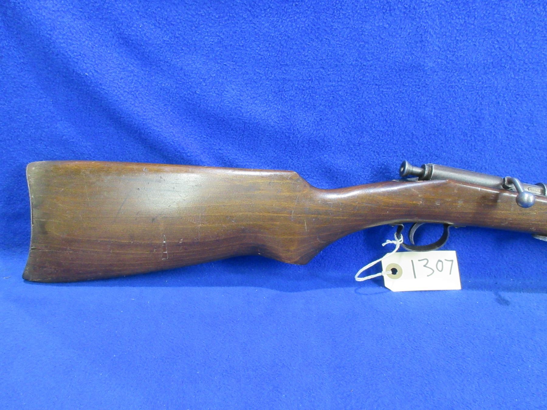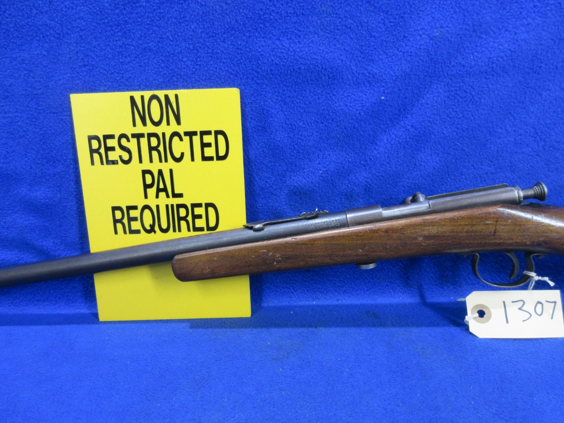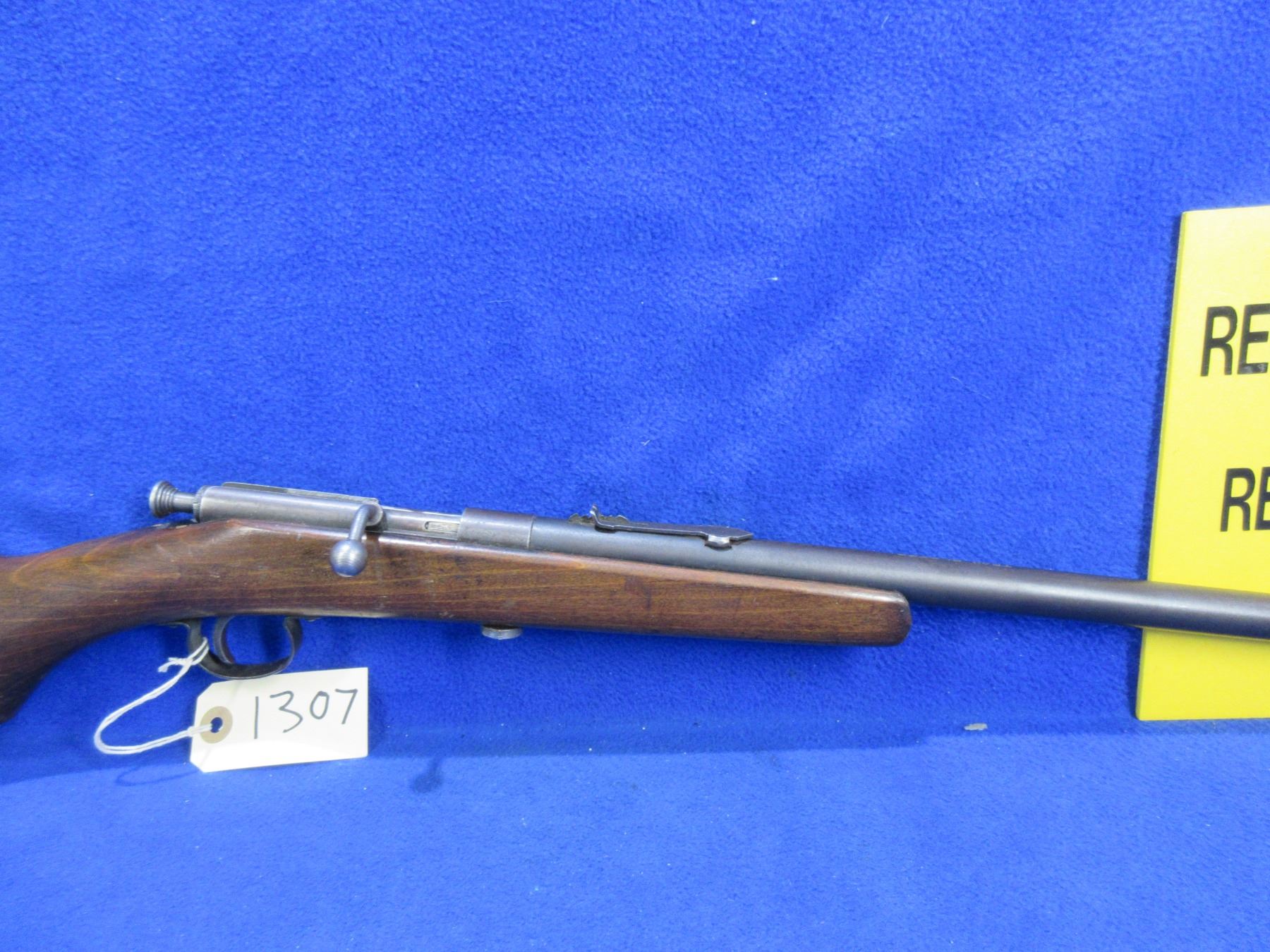 Non-Restricted - Trail Blazer Single Shot in 22 S/L/LR - This single shot bolt action rifle appears to be in good to very good working order. Barrel is 22", rifling is good to very good, bluing is good as is fading, has both sights, stock is fair to good as butt has gotten wet and has drying cracks, metal butt plate good. Ser # None