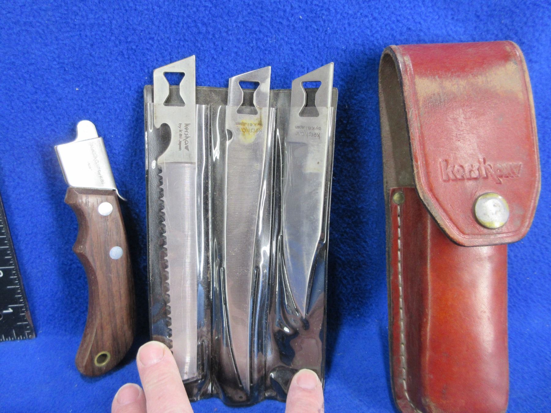 Kershaw 1095TF Blade Trader 3 Blade Knife Set with Leather Sheath - 3 Interchangeable Blades