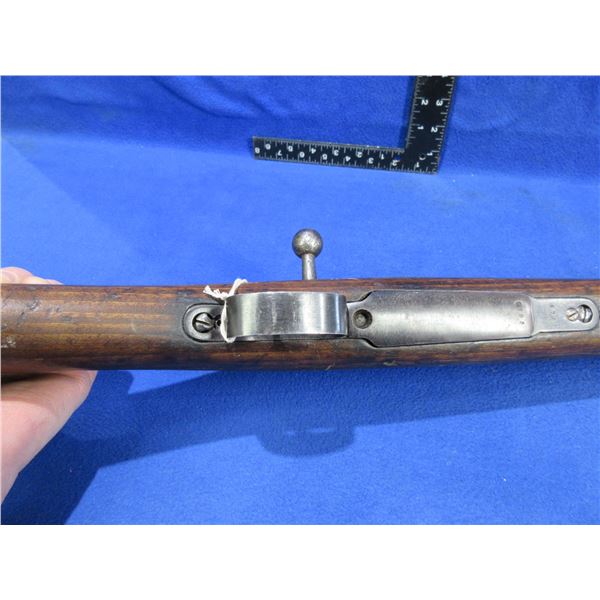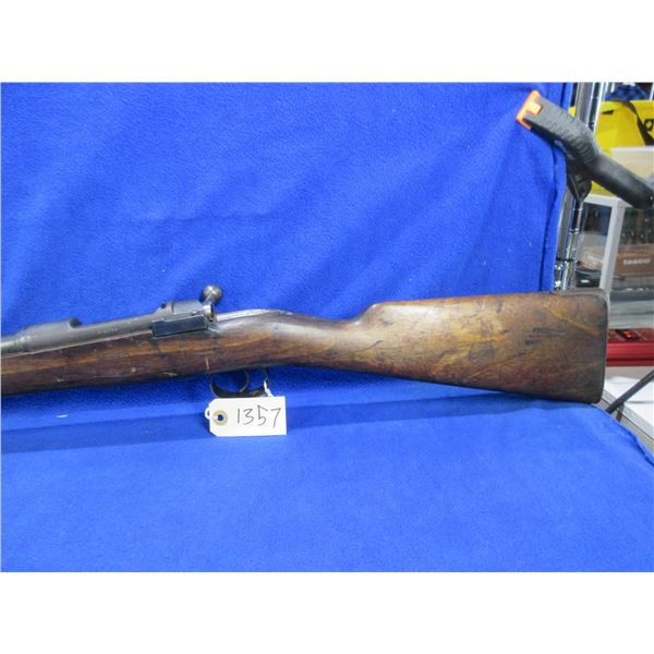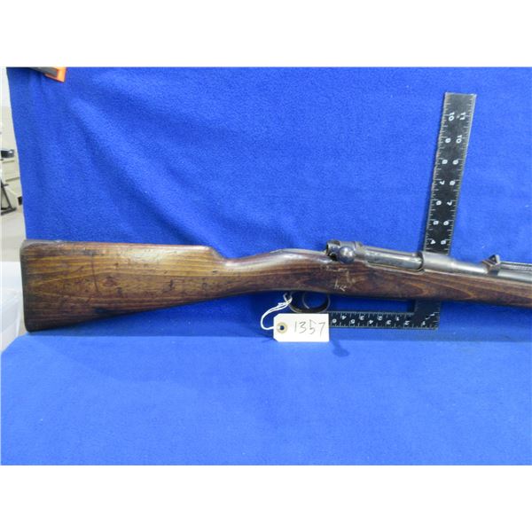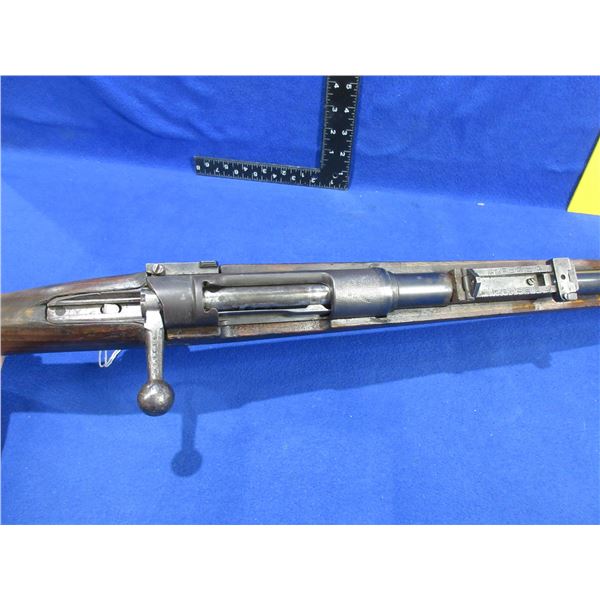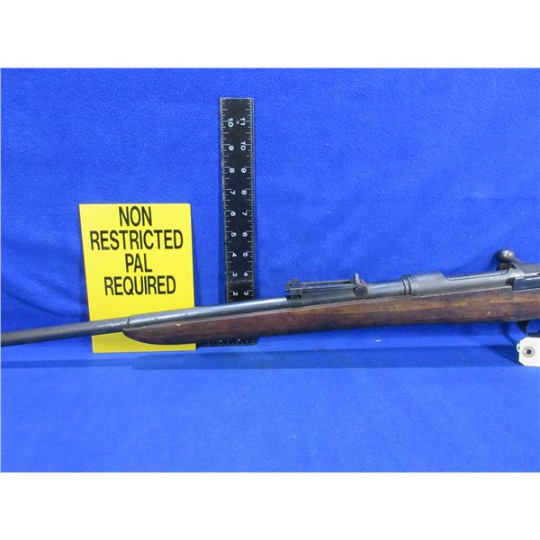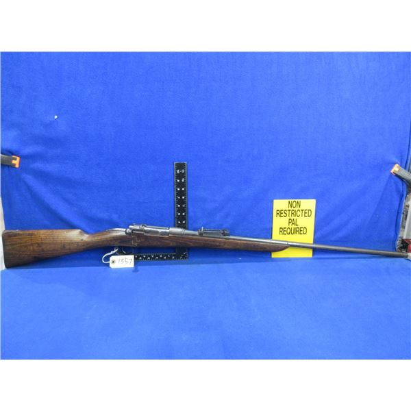 Non-Restricted - Spanish Mauser 1893 appears to be in 7x57 Mauser - This bolt action rifle with floorplate magazine is in non working order as firing pin is missing. Barrel is 29", rifling is dark, bluing is turning grey in spots, has both sights, stock is good with many usage marks, metal butt plate good, swivels are missing. Ser #R3993