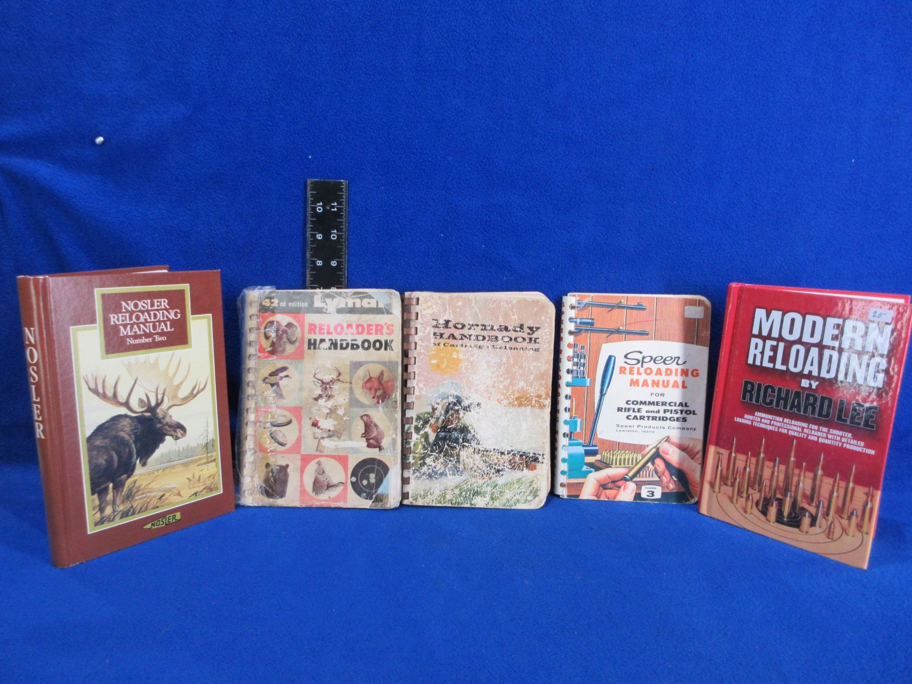 5 Books - Hornady Handbook of Cartridge Reloading, Speer Reloading Manual No. 3, Nosler Reloading Manual No. 2, Lyman Reloaders Handbook 42nd Edition, Modern Reloading by Richard Lee