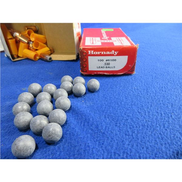 44 Cal./50 Cal. Bullets and .530" Lead Balls - Box of 14 (50 Cal. 275gr T/C), Box of 17 (50 Cal. Mixed), Box of 10 (44 Cal. With Sabots), Box of 18 (.530" Hornady Lead Balls)
