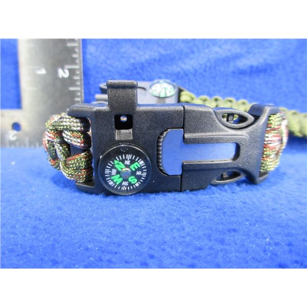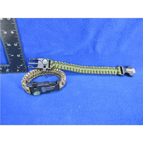 NEW - 2 Paracord Bracelets with Compass, Whistle & Flint