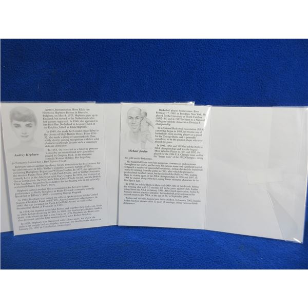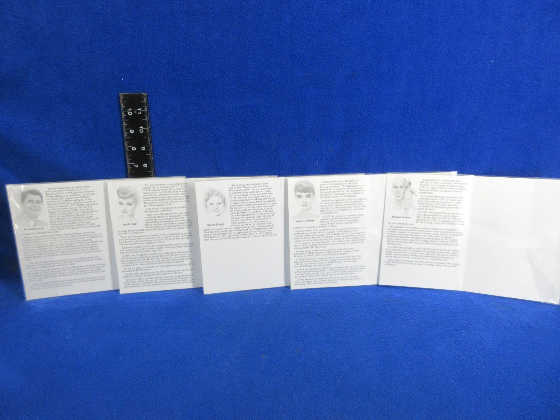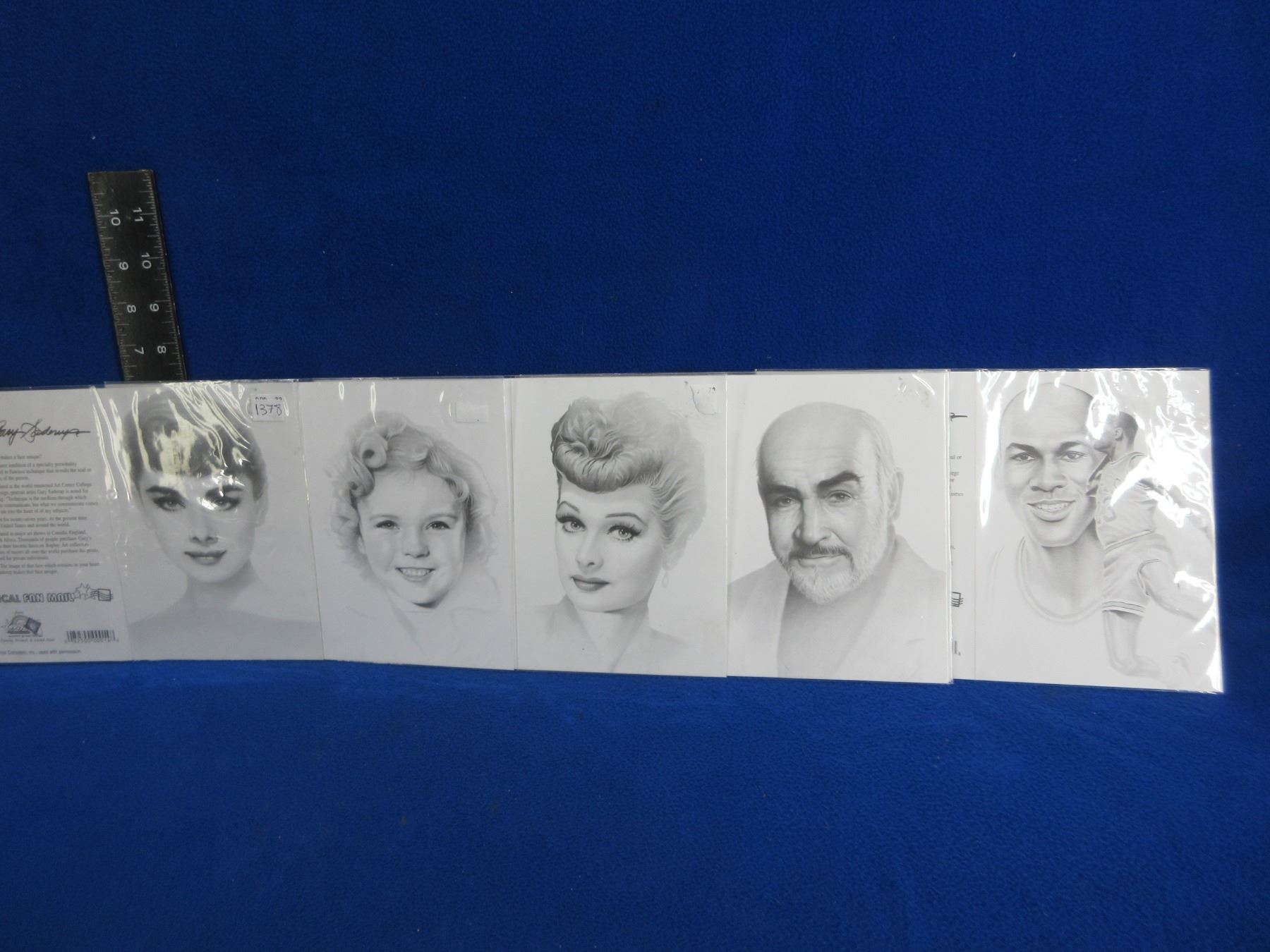 6 Biographical Fan Mail Cards by Gary Saderup - Sean Connery, Lucille Ball, Shirley Temple, Audrey Heburn, Ronald Reagan, Michael Jordan