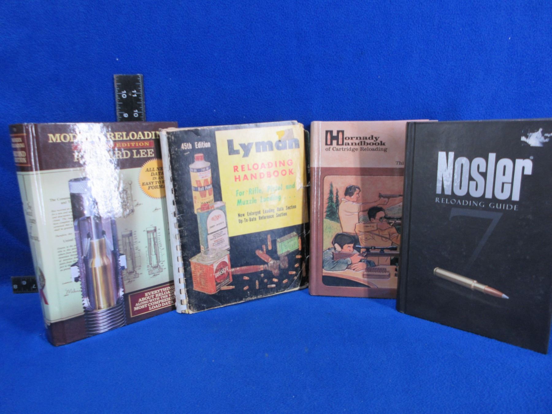 4 Books - Lyman Reloading Handbook 45th Edition, Nosler Reloading Guide 7, Hornady Handbook of Cartridge Reloading 3rd Edition, Modern Reloading 2nd Edition Richard Lee