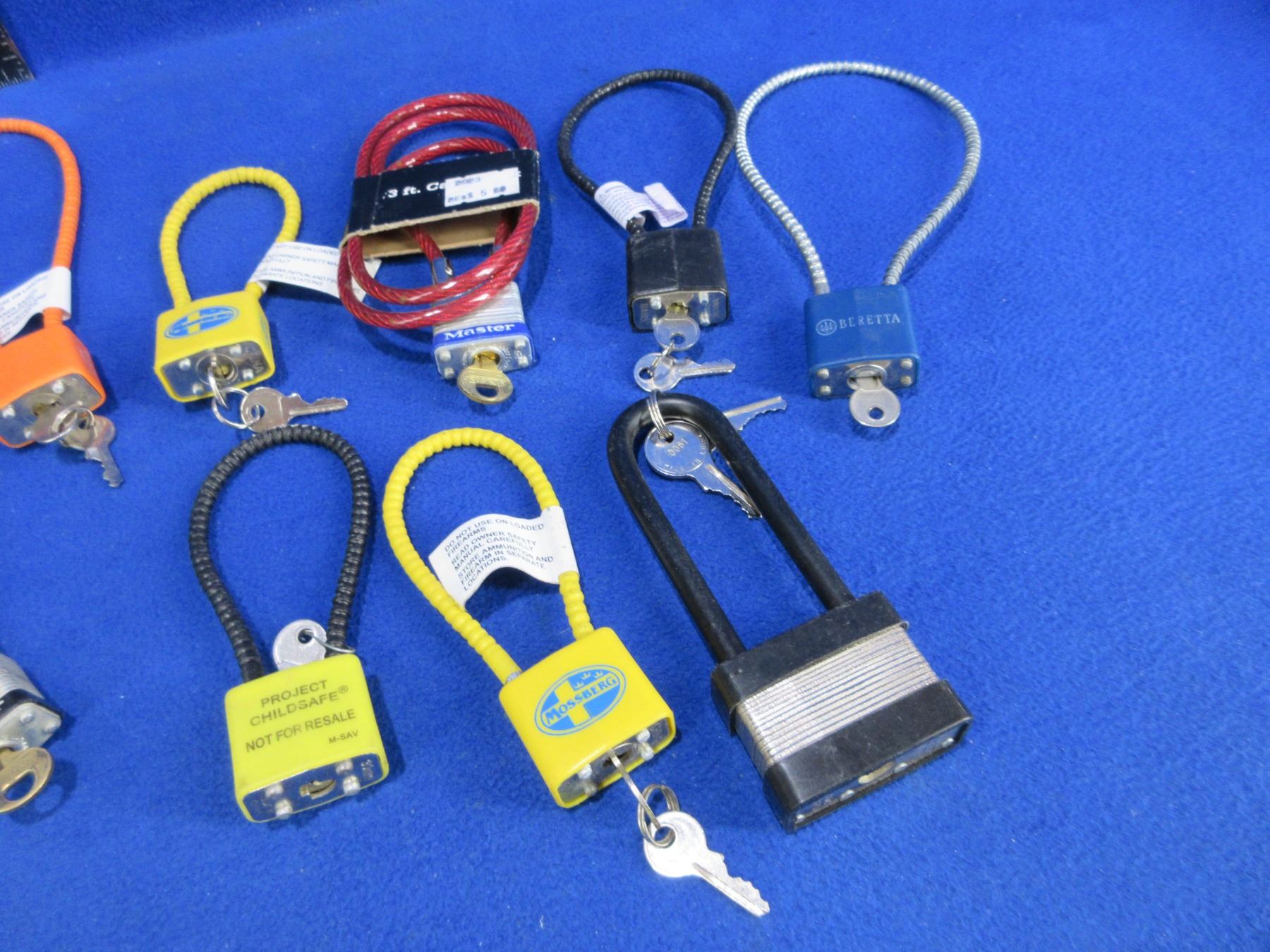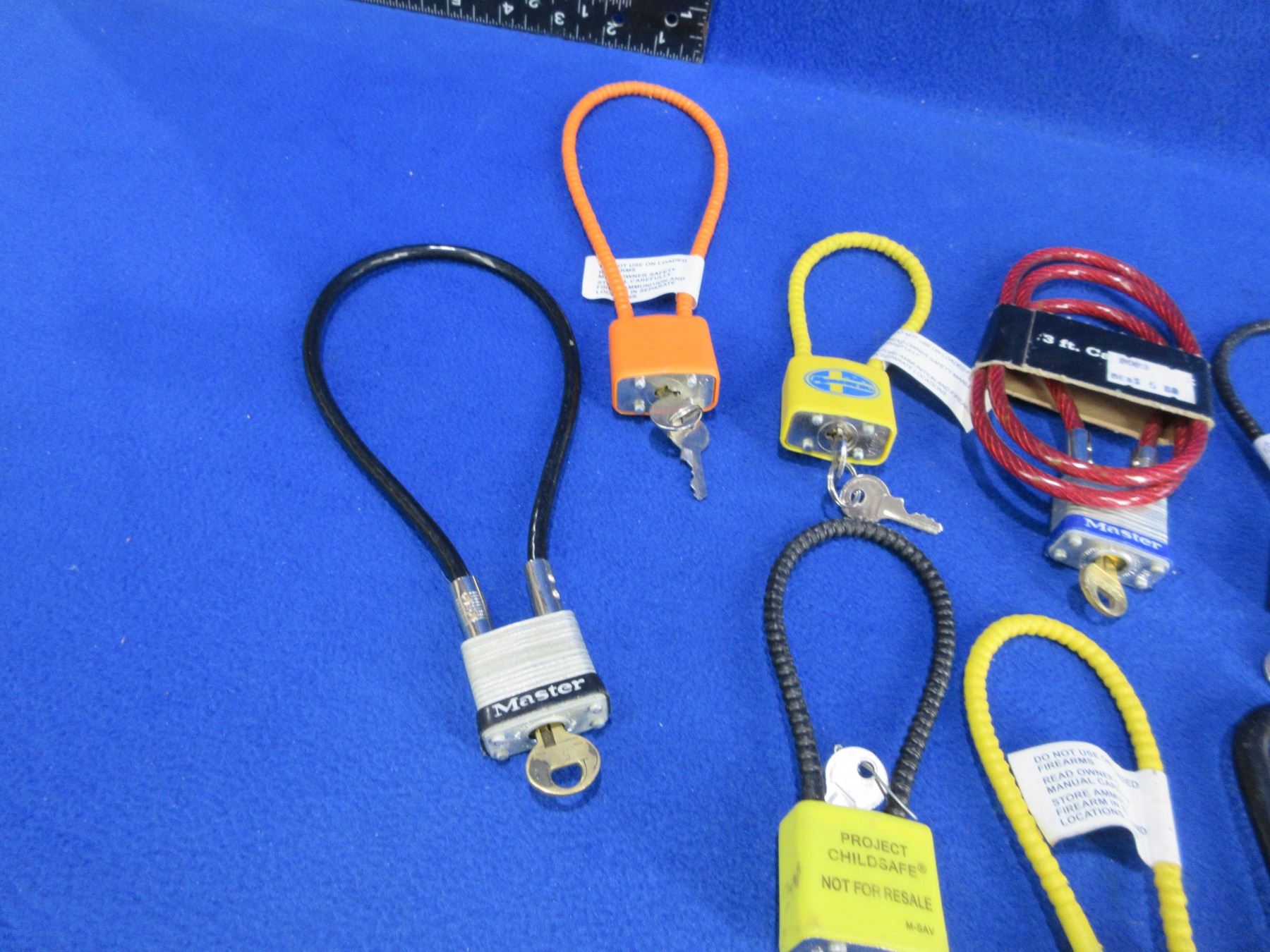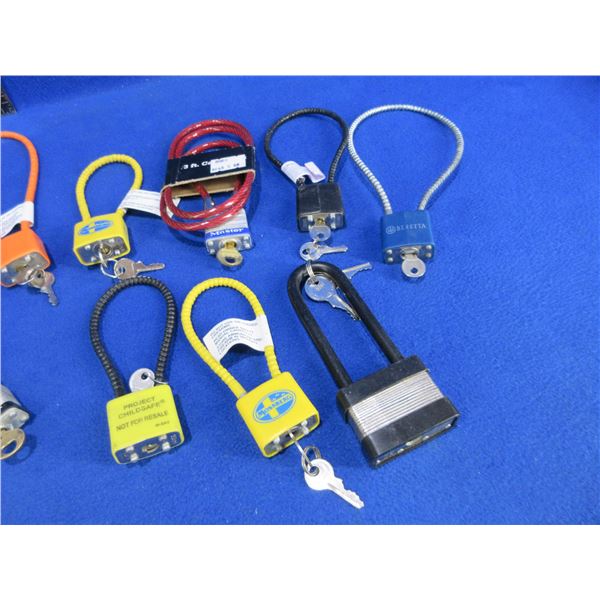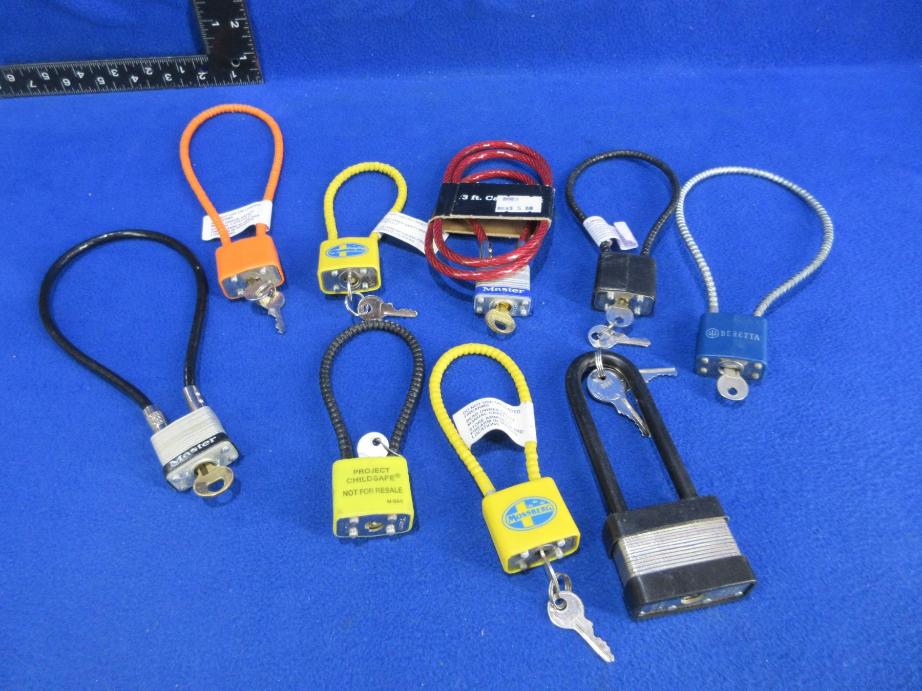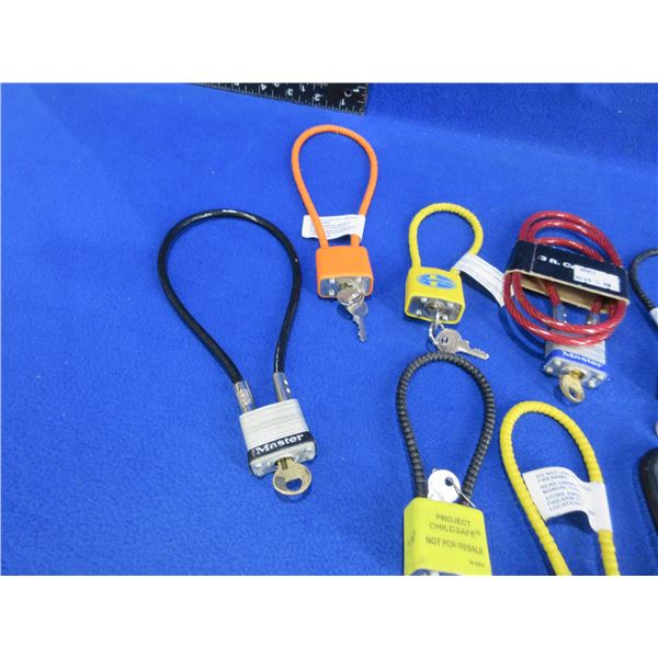8 Cable Locks and a Padlock - 5 with 2 Keys, 4 with 1 Key
