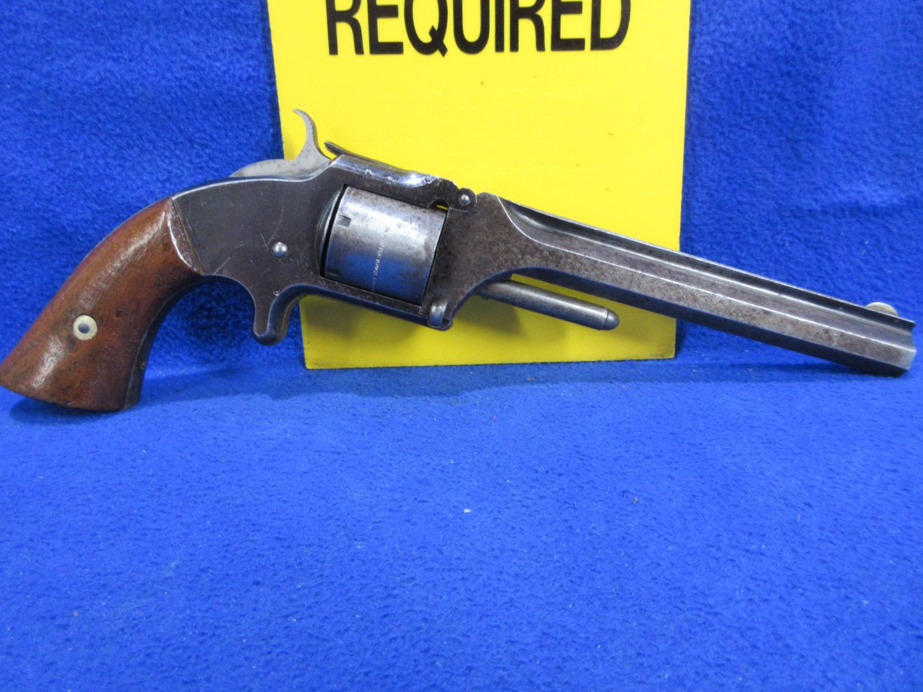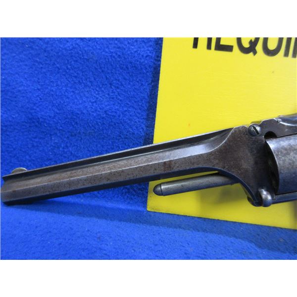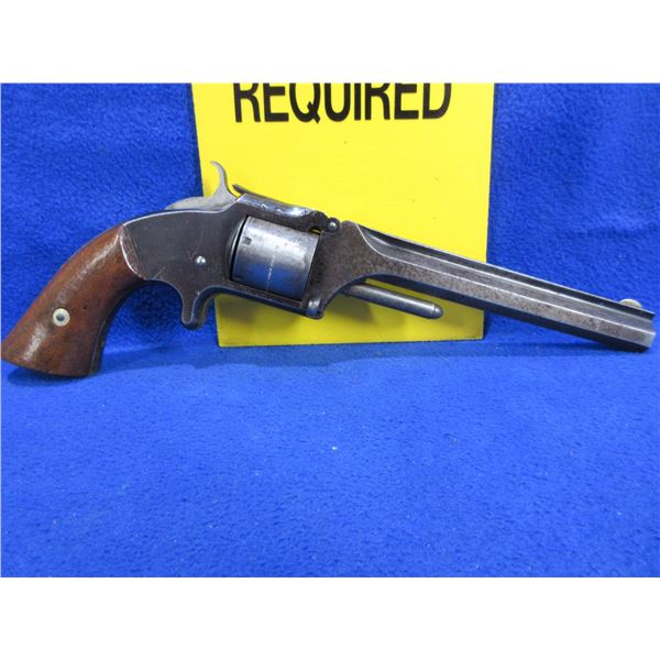 Antique - No PAL Required - Smith & Wesson #2 Army in 32 RF - Circa 1860's, rare and desirable. This six shot single action revolver appears to be in good to very good working order. Barrel is 6". rifling is good to very good for age, bluing mostly gone with light pitting, has both sights, wood grips are good for age. Ser # 992