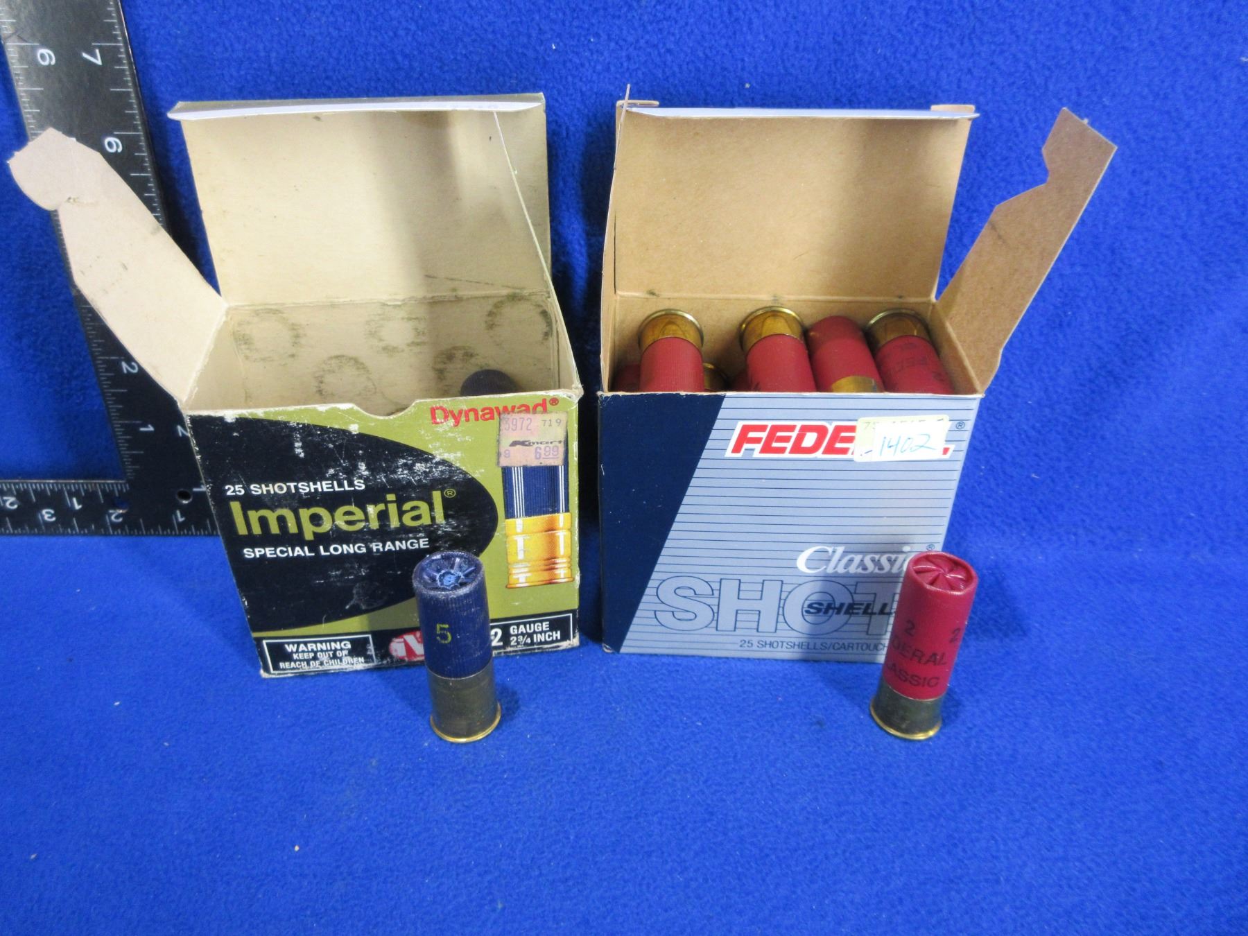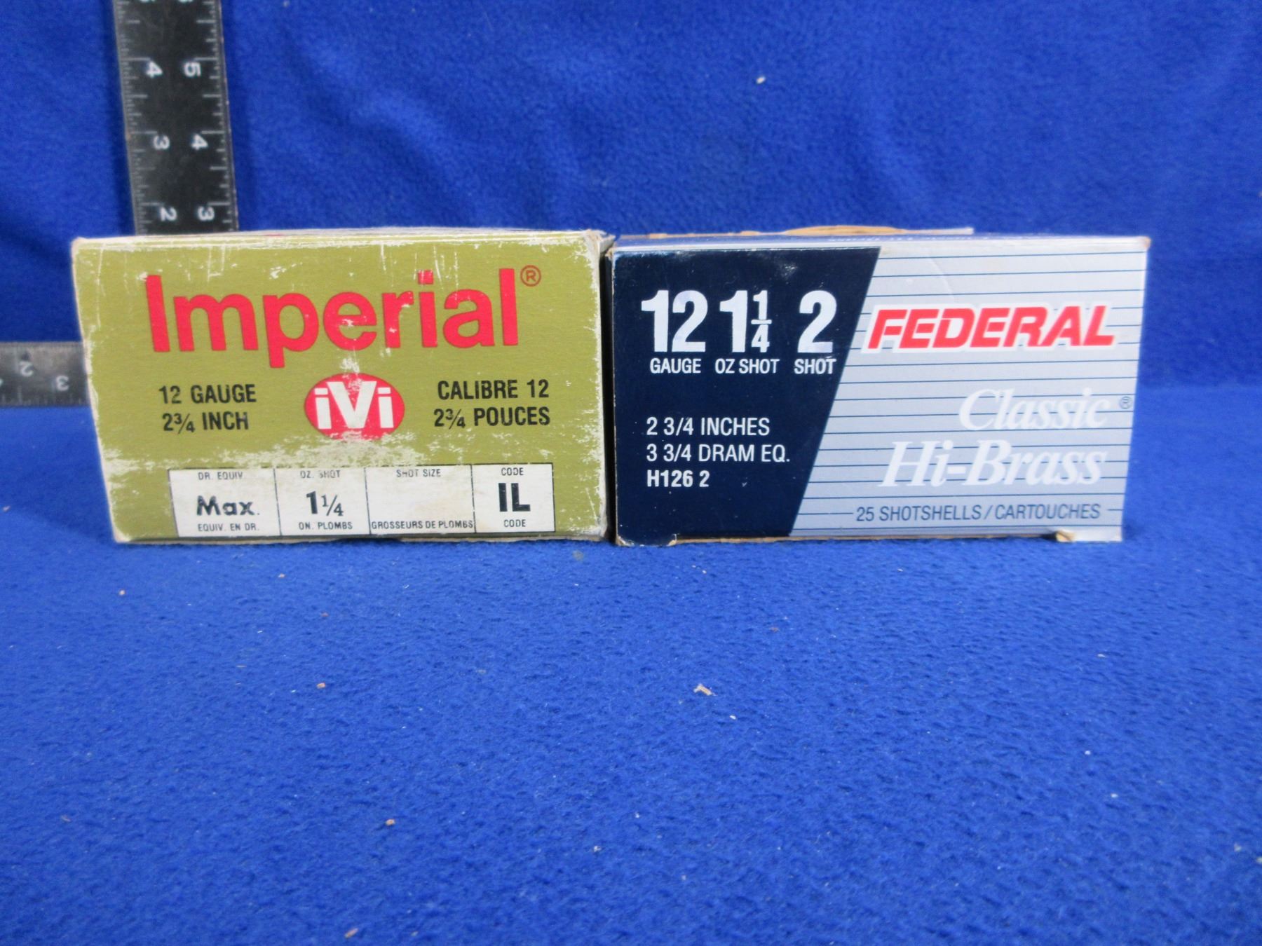 12 Ga. 2 3/4" Shotshells - Federal 2 Shot - 1 Box of 25, Imperial 5 Shot - 1 Box of 17 - PICK UP ONLY