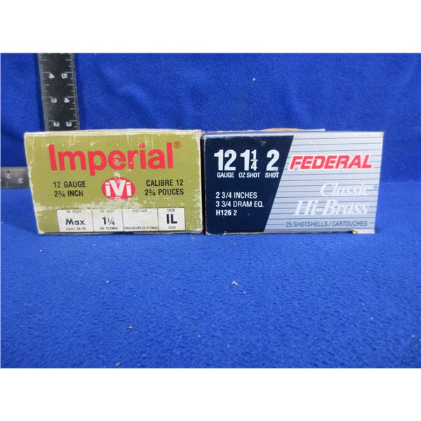 12 Ga. 2 3/4" Shotshells - Federal 2 Shot - 1 Box of 25, Imperial 5 Shot - 1 Box of 17 - PICK UP ONLY