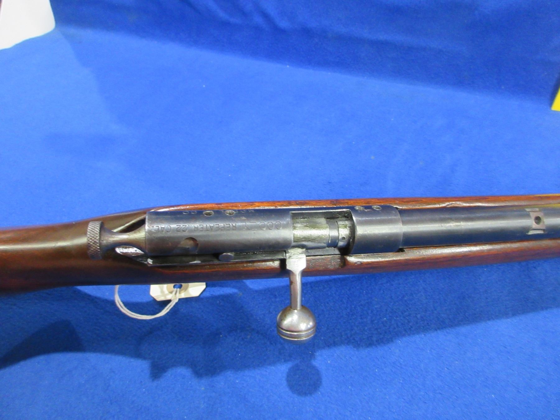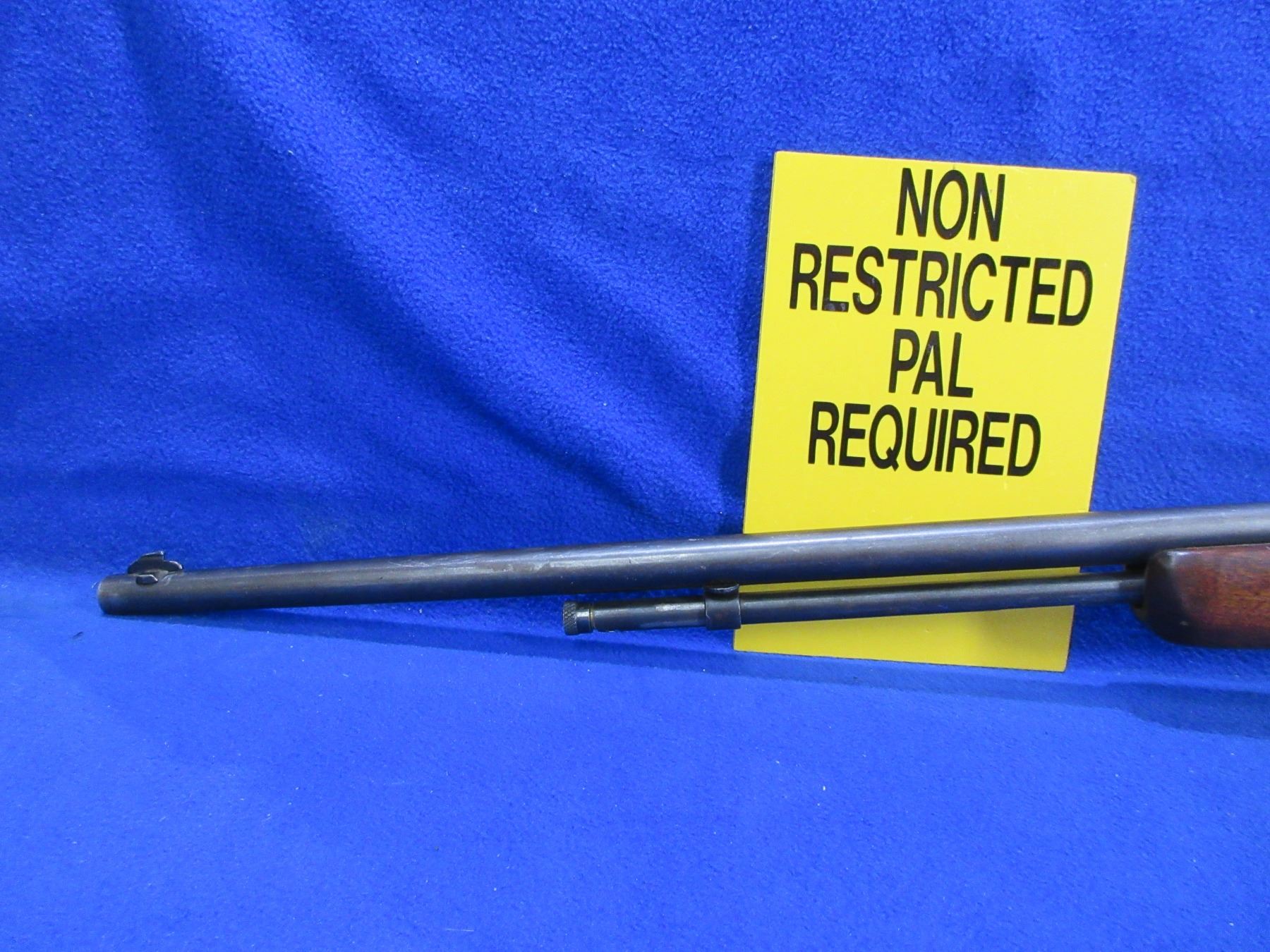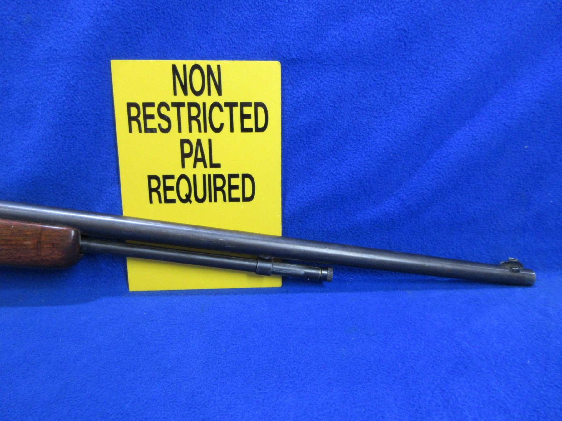 Non-Restricted - Cooey Repeater Model 60 in 22 Cal - This bolt action rifle with tube magazine appears to be in good to very good working order. Barrel is 24", rifling is good to very good, bluing is turning grey and has light scratches, has front sight, missing rear sight but is drilled and tapped for side mount scope base, stock is good with usage marks, metal butt plate good. Ser #None