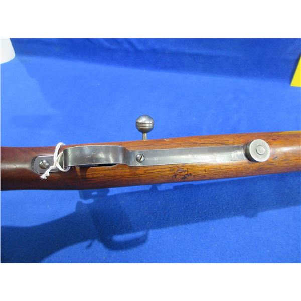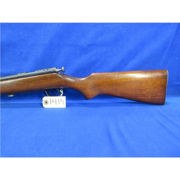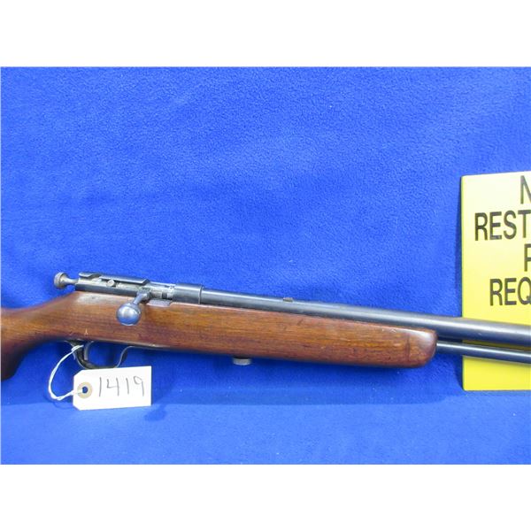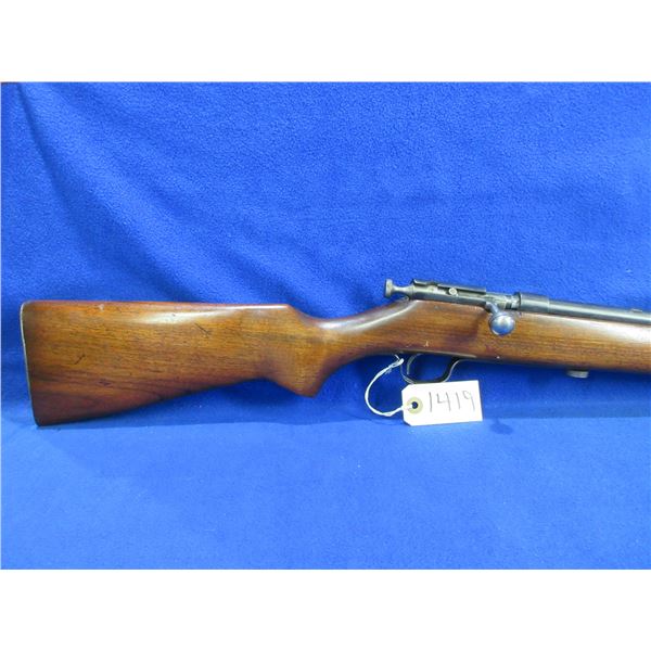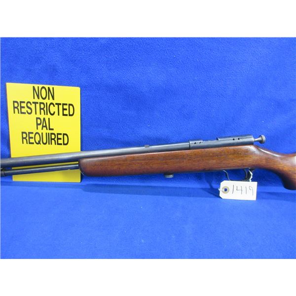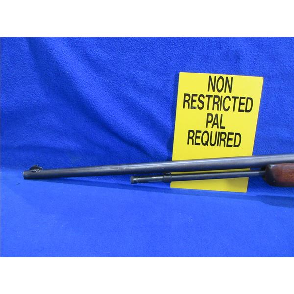 Non-Restricted - Cooey Repeater Model 60 in 22 Cal - This bolt action rifle with tube magazine appears to be in good to very good working order. Barrel is 24", rifling is good to very good, bluing is turning grey and has light scratches, has front sight, missing rear sight but is drilled and tapped for side mount scope base, stock is good with usage marks, metal butt plate good. Ser #None
