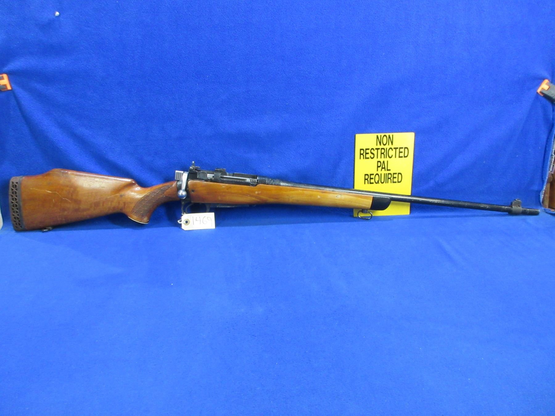 Non-Restricted - Lee Enfield No. 4 Mark I in 303 British - This bolt action rifle with removable magazine appears to be in good to very good working order. Barrel is 25", rifling is good to very good, bluing is pitted and appears painted, has both sights, stock is good with many usage marks, rubber recoil pad poorly fitted, comes with swivels. Ser #LE4147C