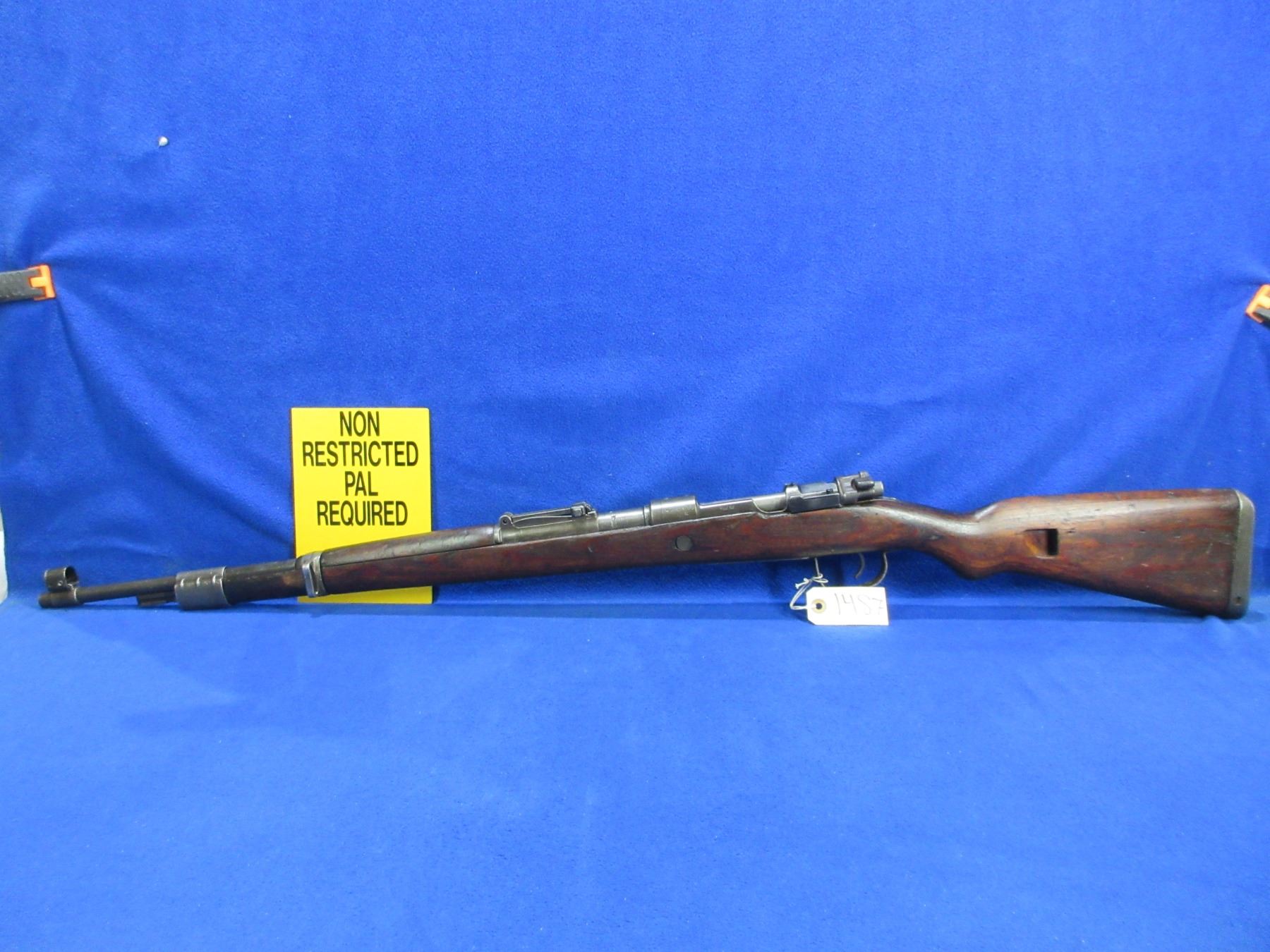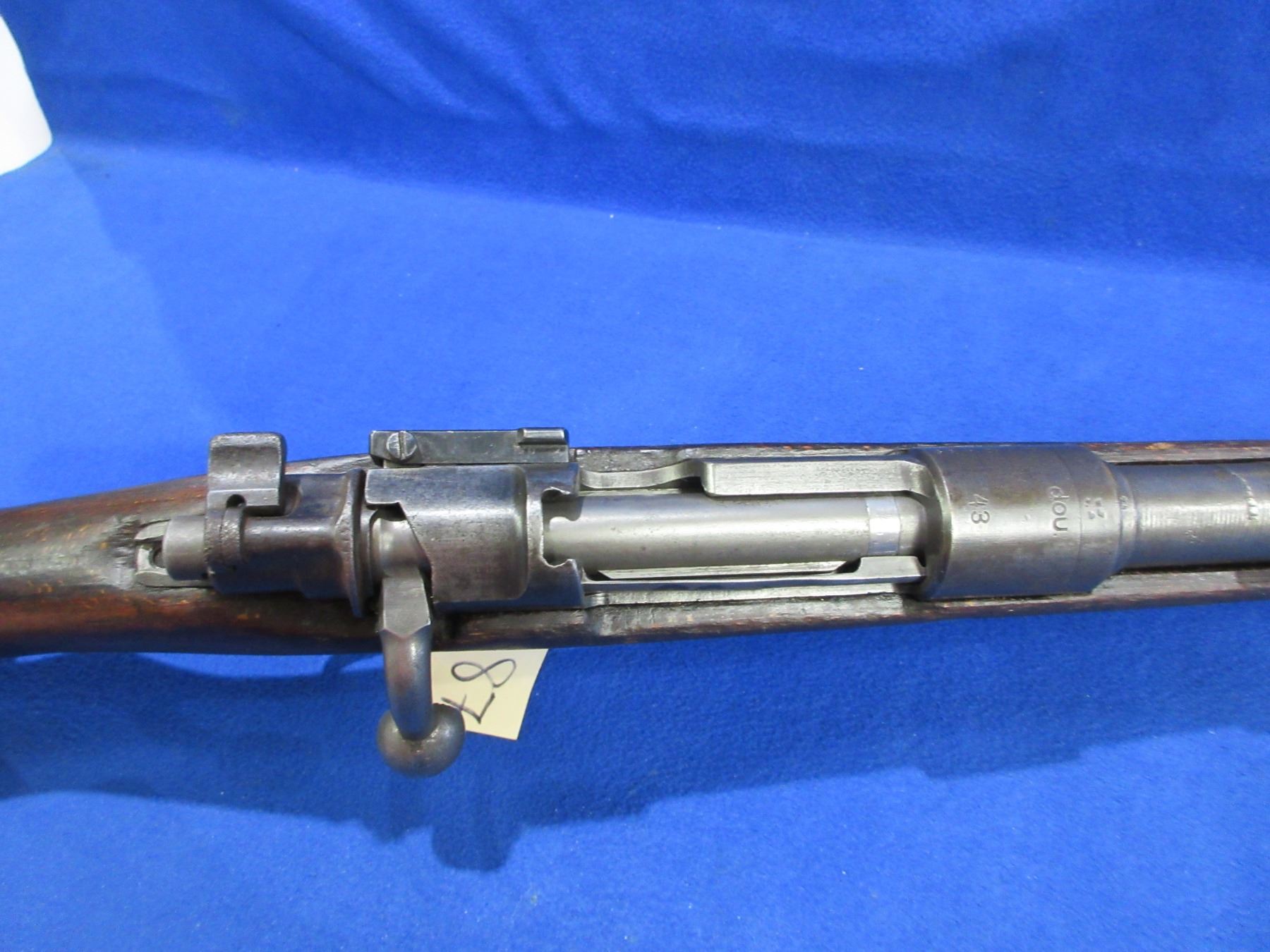 Non-Restricted - Mauser K98 DOU 43 in 8mm - This bolt action rifle with internal magazine appears to be in good to very good working order. Barrel is 23 1/2", rifling is fair to good, bluing is mostly gone, has both sights, stock is good with many usage marks, metal butt plate good, comes with swivels. Ser #6435LL
