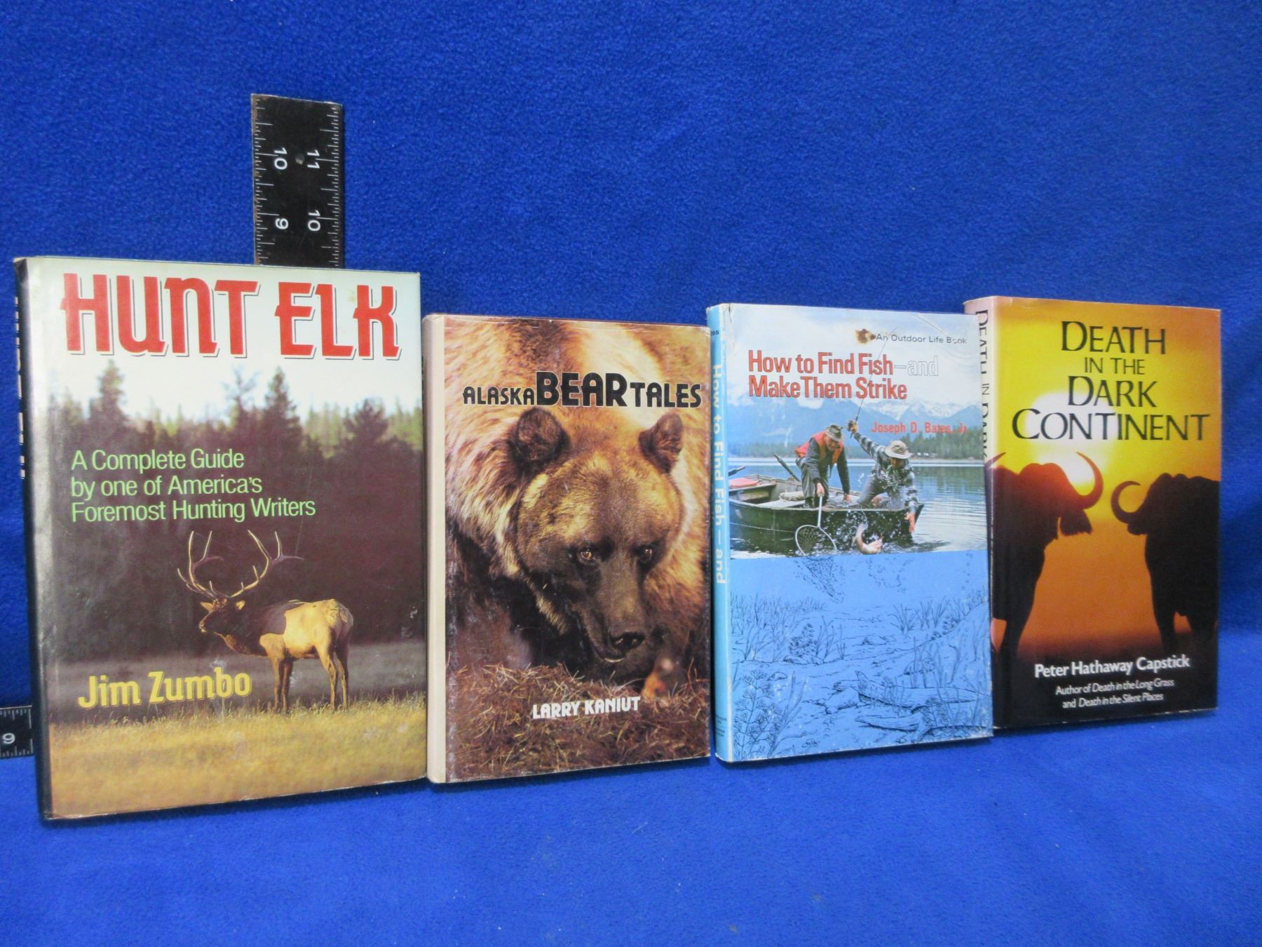 4 Books - Alaska Bear Tales, Hunt Elk, How to Find Fish and Make Them Strike, Death in the Dark Continent