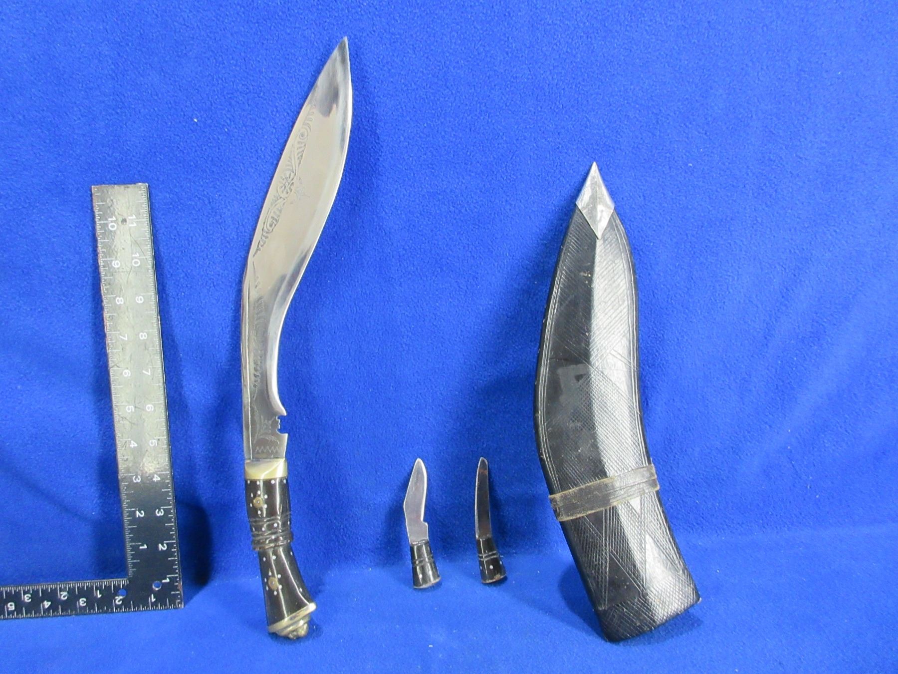 Lot 1497 Kukri Knife 3 Knife Set with Sheath - 11" Blade