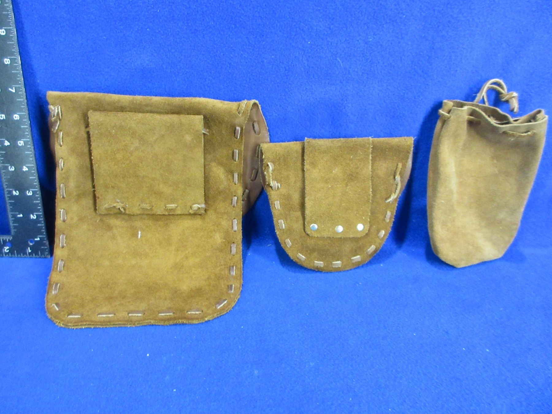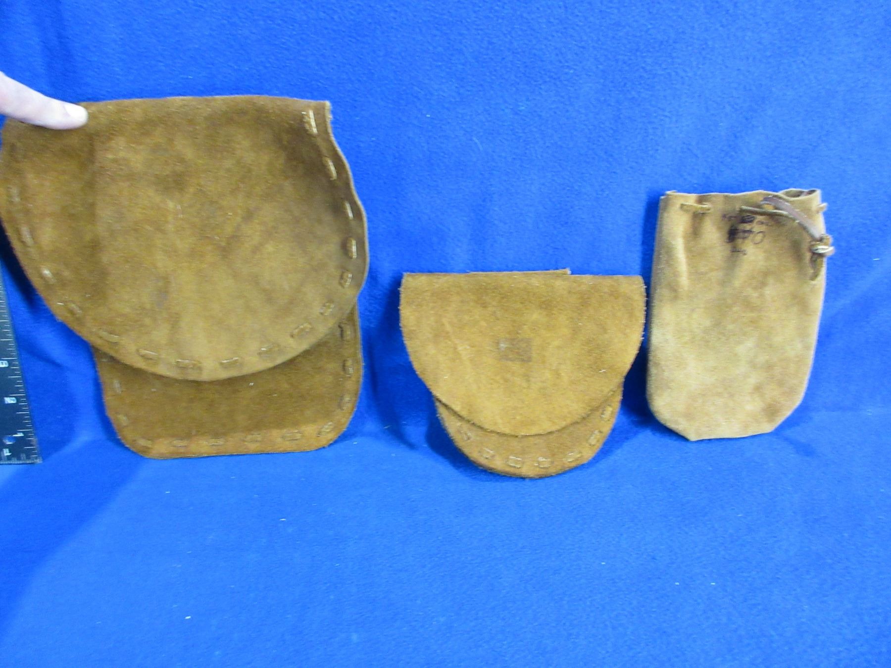 2 Leather Possibles Bags (Small, Large), Lead Ball Pouch