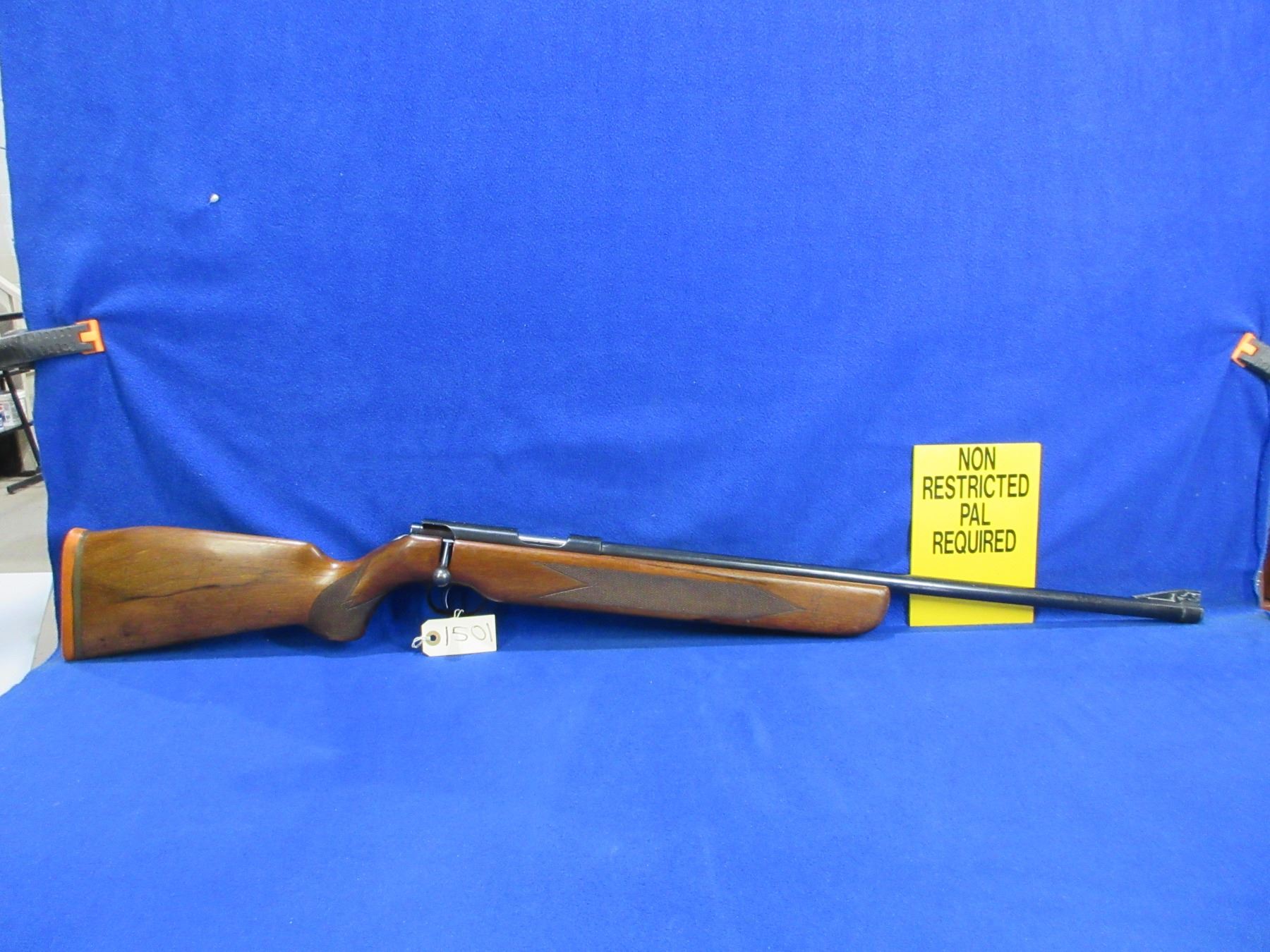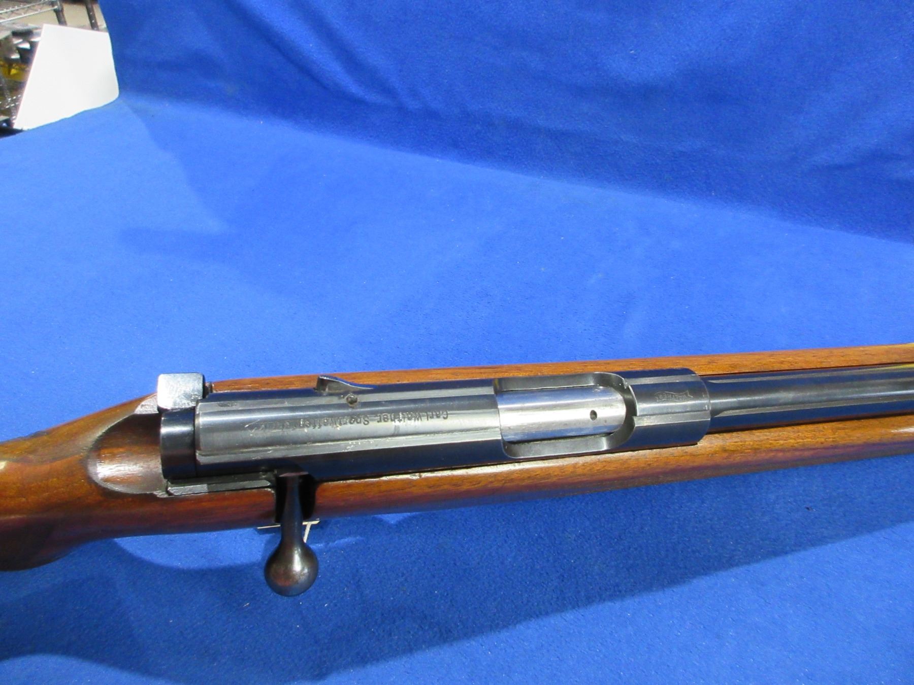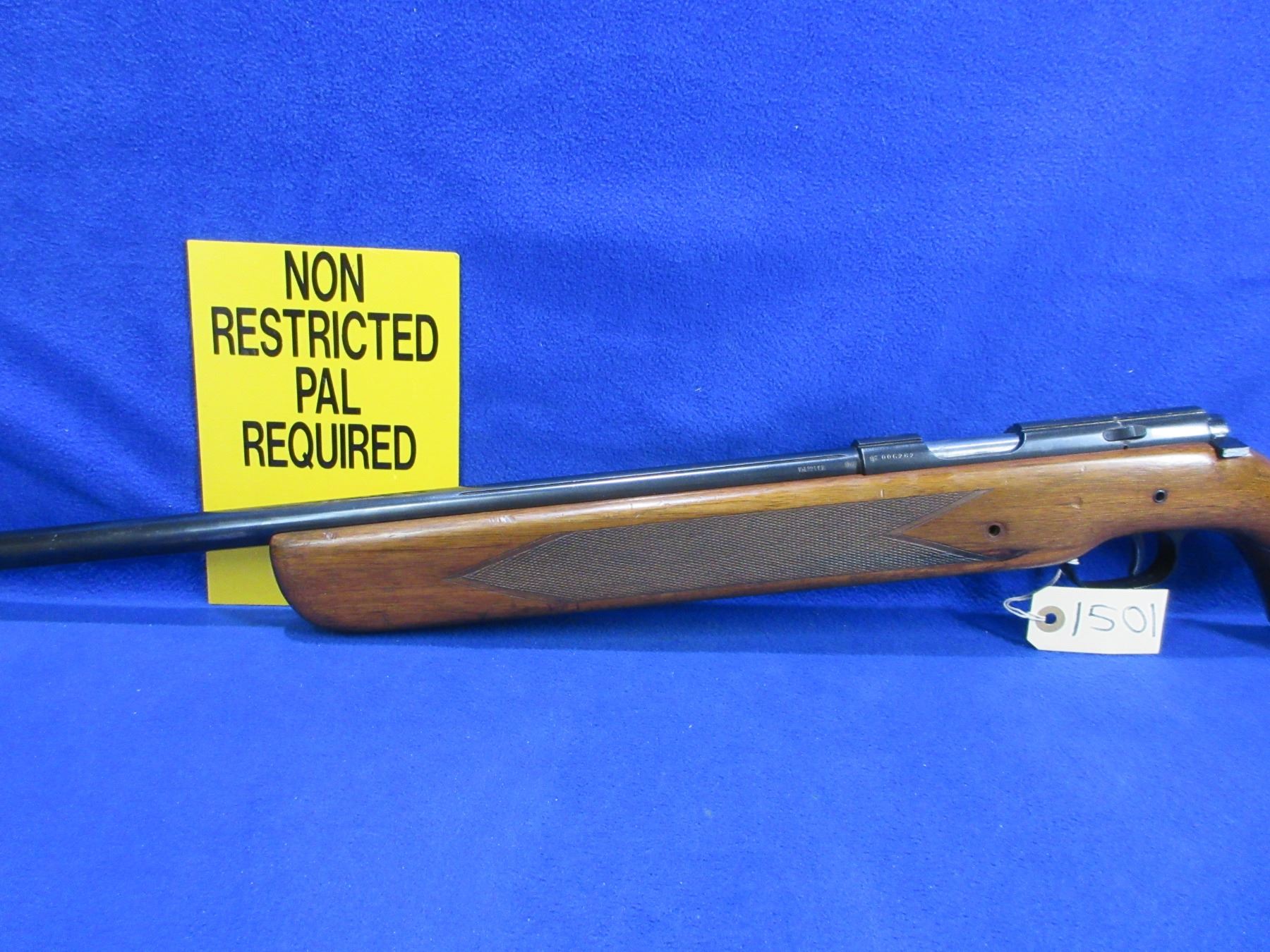 Non-Restricted - Walther KKM Target in 22 LR - This bolt action single shot target rifle appears to be in good to very good working order. Barrel is 25 3/4", rifling is very good, bluing is good with some wear patches and light pitting, has no sights but has integral .22 dovetail base, Target stock is good with usage marks, rubber recoil pad good, swivel studs are missing. Ser #OO6282