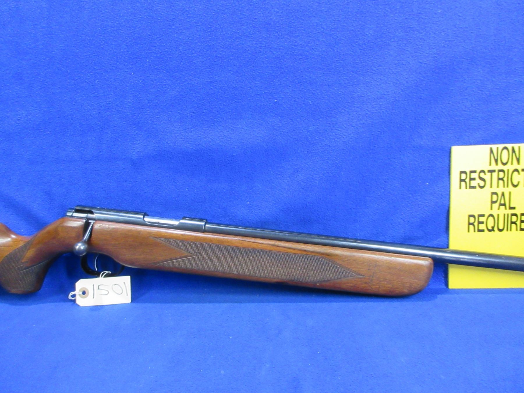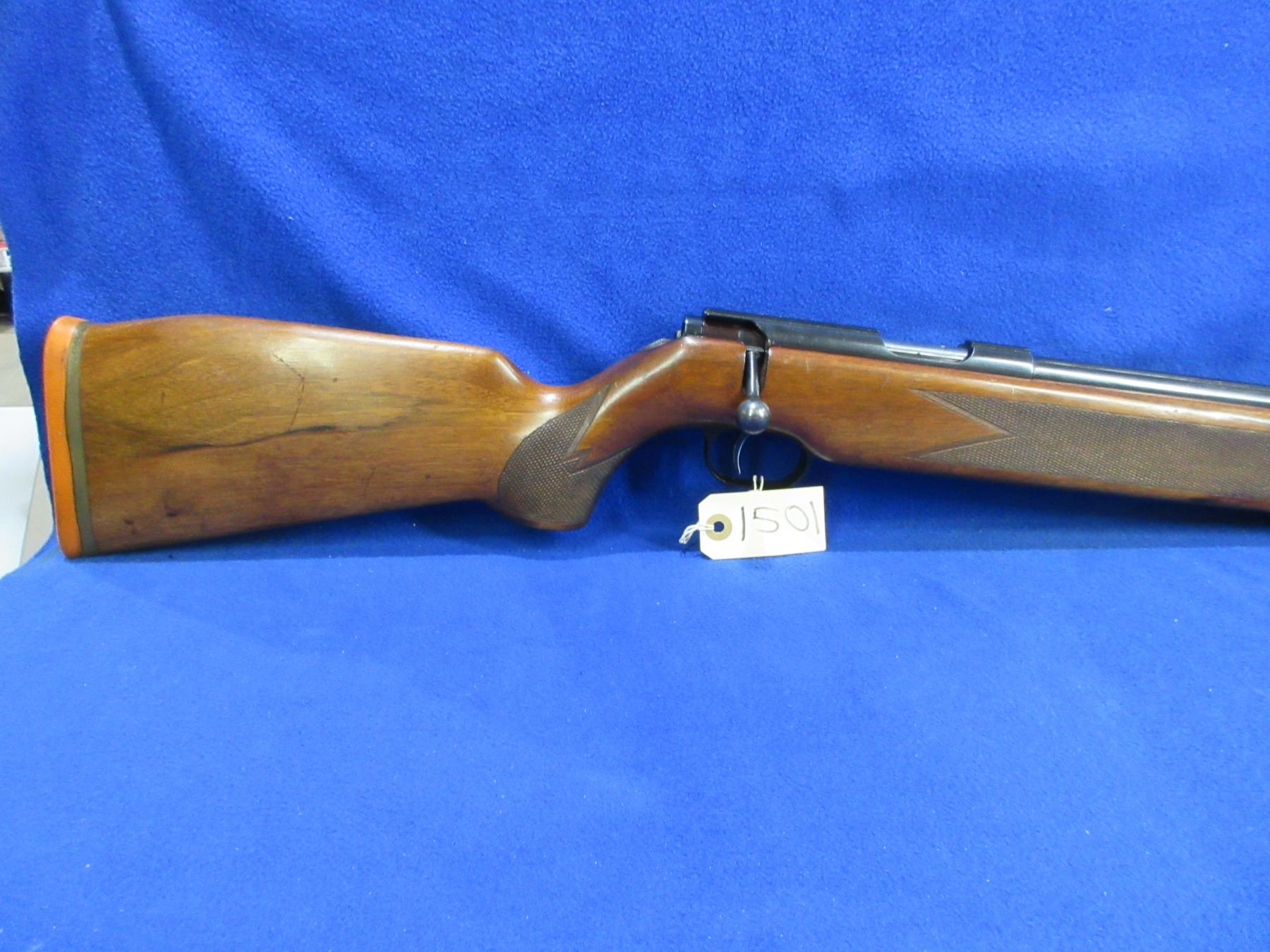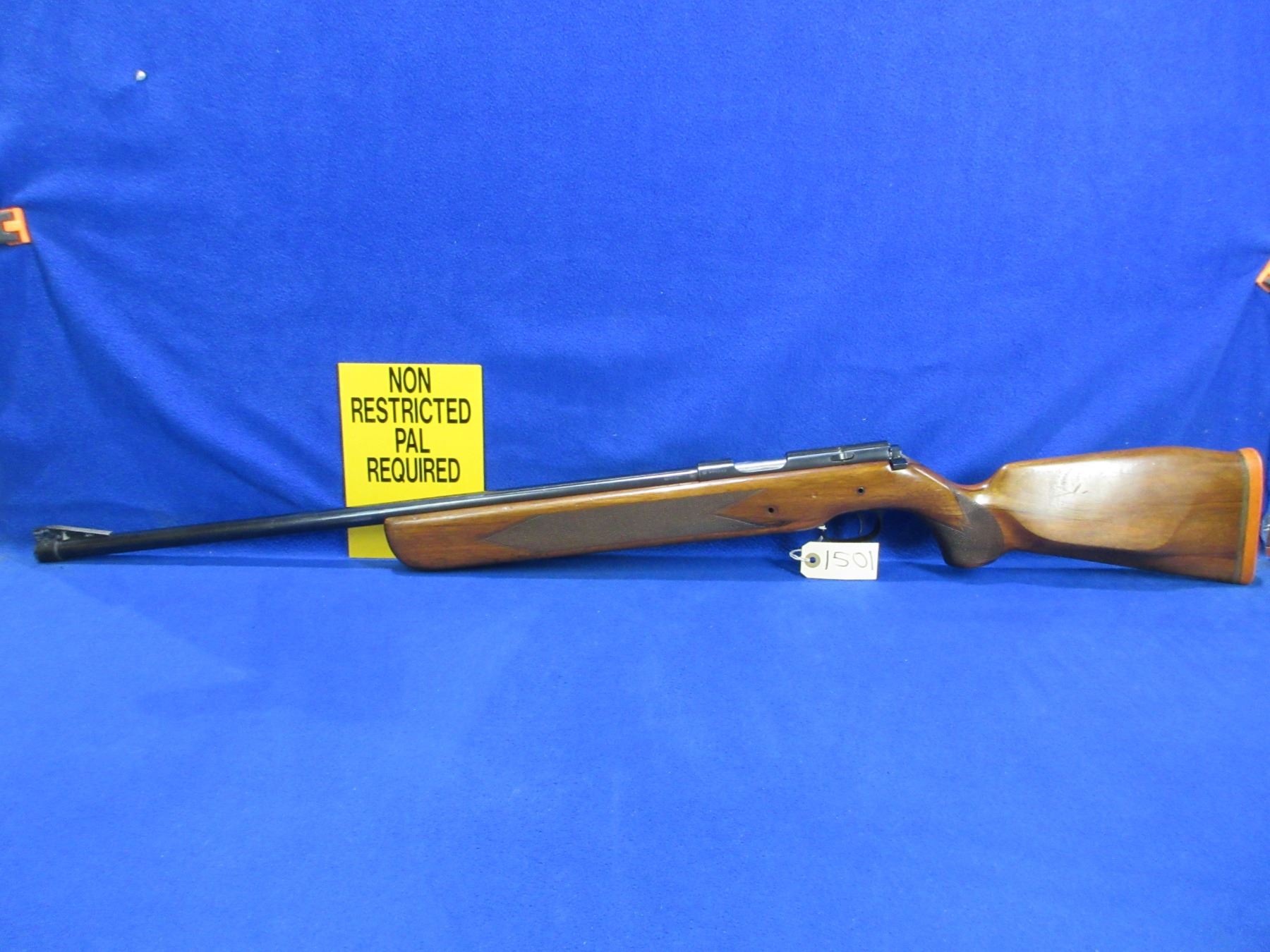 Non-Restricted - Walther KKM Target in 22 LR - This bolt action single shot target rifle appears to be in good to very good working order. Barrel is 25 3/4", rifling is very good, bluing is good with some wear patches and light pitting, has no sights but has integral .22 dovetail base, Target stock is good with usage marks, rubber recoil pad good, swivel studs are missing. Ser #OO6282