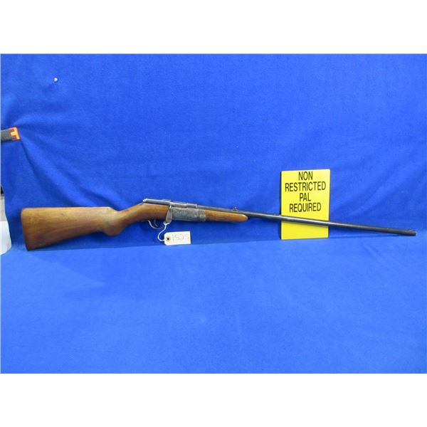Non-Restricted - BSW Precision Modell X in 22 LR- This single shot bolt action rifle appears to be in working order but should not be fired as stock has a poor crack repair under the action. Barrel is 24 1/2", rifling is good to very good, bluing is fair to good with pitting, has both sights, stock has a major crack repair under the action, metal butt plate good. Ser # 149145