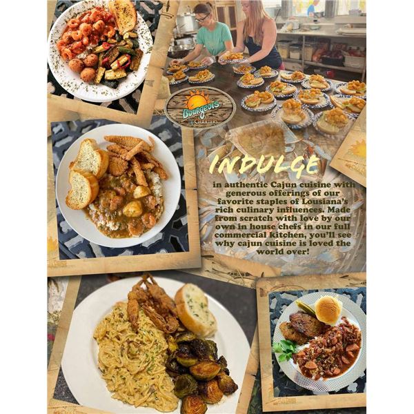 One of their amazing chefs will prepare the finest cajun and creole cuisine for your meals. Included with donation is one half day inshore boat fishing trip to target hungry schools of speckled trout and big fighting redfish where your captain will clean your catch.