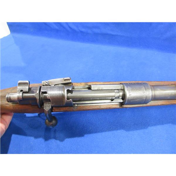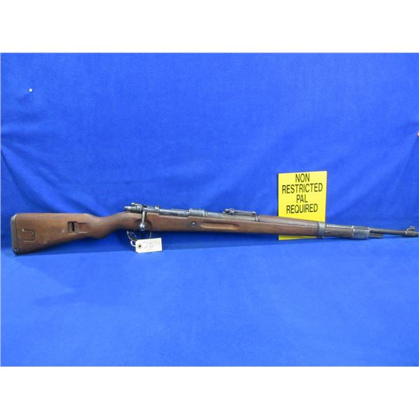 Non-Restricted - Mauser K98 DOU 45 in 8mm - This bolt action rifle with internal magazine appears to be in working order but safety is not working and bolt release is loose. Barrel is 23 1/2", rifling is good, bluing is turning grey, has both sights, full wood stock is good with usage marks, butt plate good, comes with swivels. Ser #K3898K