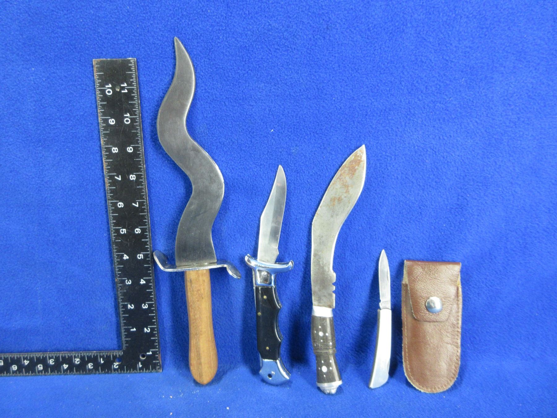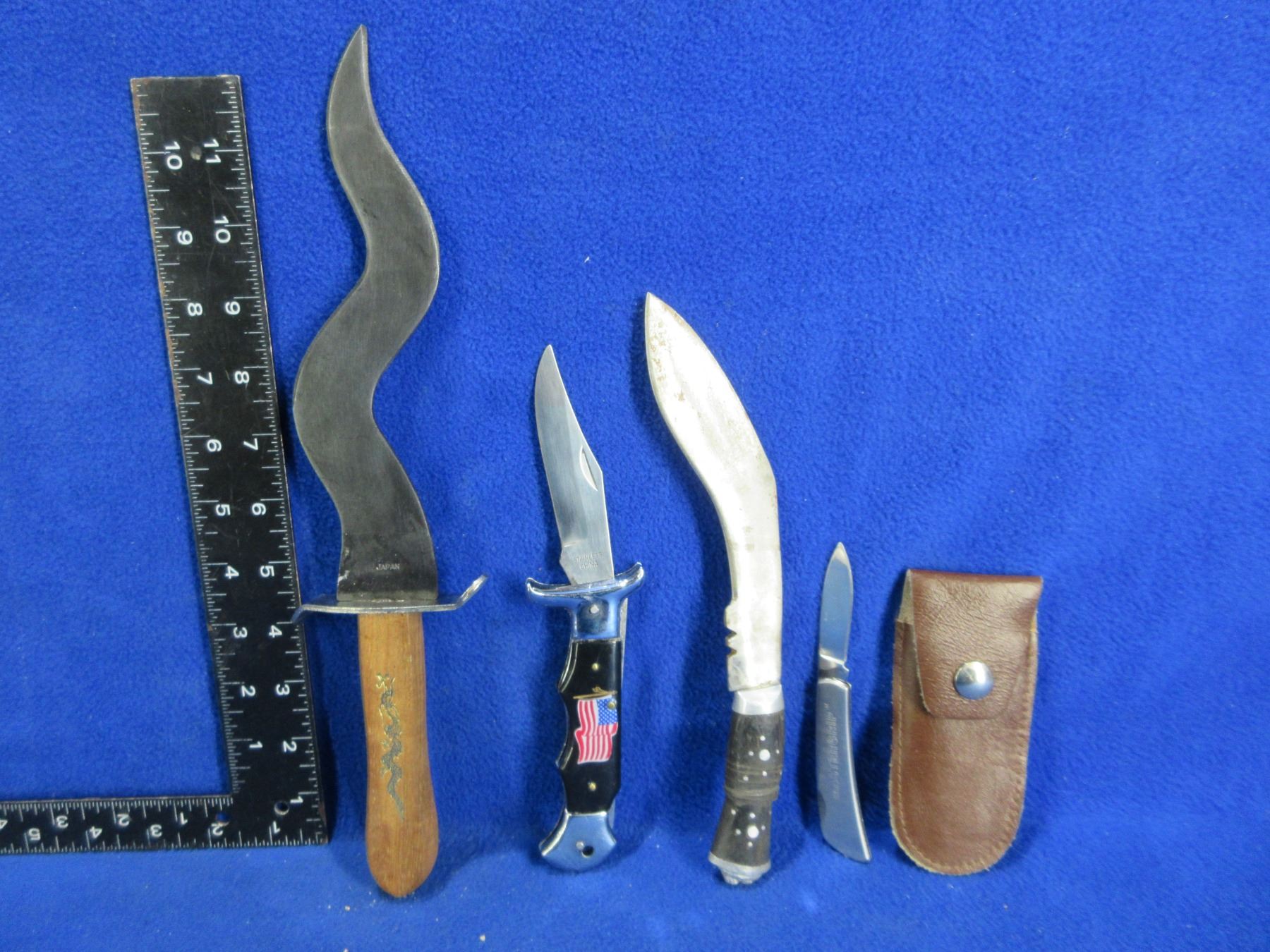 Small Kukri Knife (6" Blade), Kris Style Dagger (8" Blade), 2 Folding Lock Knives (3 1/2" Blade and 2" Blade with Sheath)