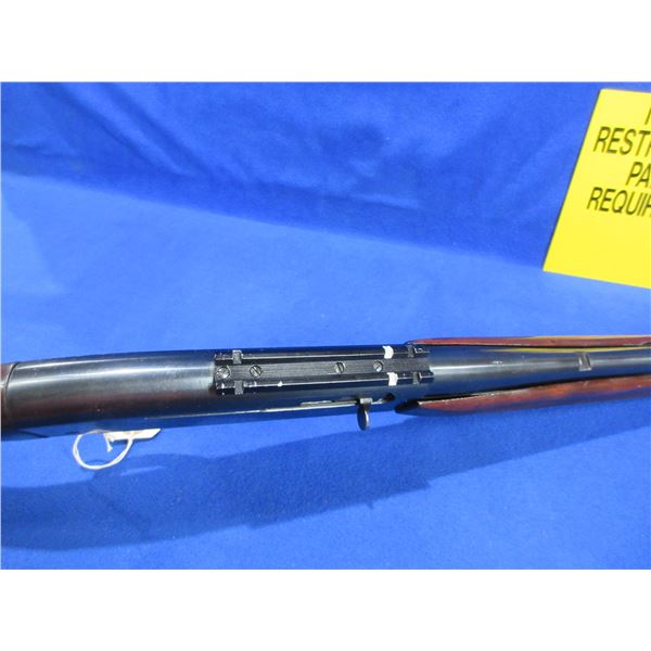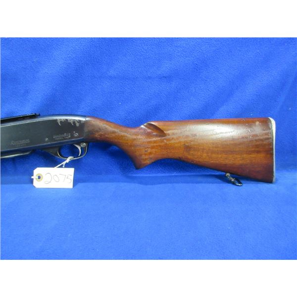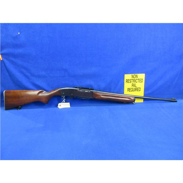Remington Woodsmaster 740 in 30-06 Sprg - This semi-auto rifle with removable magazine appears to be in good to very good working order but the magazine does not hold the action open. Barrel is 21 3/4", rifling is good to very good, bluing is good with light scratches and some pitting on left side of the action, has front sight, missing rear sight but has Weaver style base, stock is good with many usage marks and finish flaking, forearm is good with usage marks and finish flaking, metal butt plate good, comes with swivels. Ser # 165409