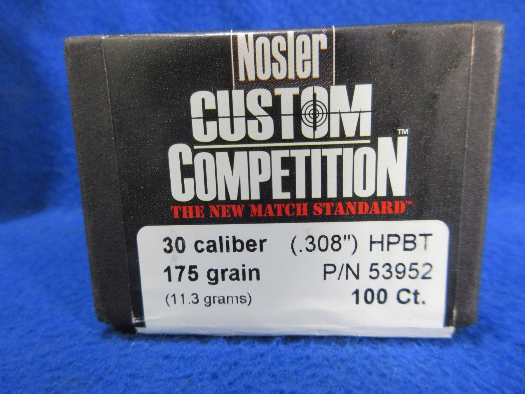 30 Cal. .308" 175gr HPBT Nosler Competition Bullets - Sealed Box of 100