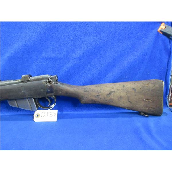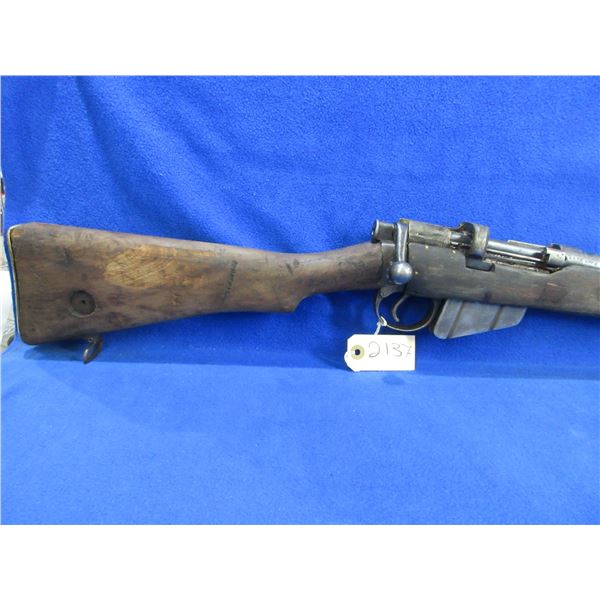 Non-Restricted - Lee Enfield No. 1 Mark III in 303 British - This rifle was packed in grease, marked "Crown over G.R, Enfield 1918 SHTLE III". This bolt action rifle with removable magazine appears to be in non working order as trigger spring appears broken. Barrel is 25", rifling is good to very good, bluing is poor to fair and has been painted, has both sights, full wood stock is good for age with many usage marks, rear handguard is missing and front handguard is damaged at the barrel ring, brass butt plate good, comes with swivels. Ser #H5471