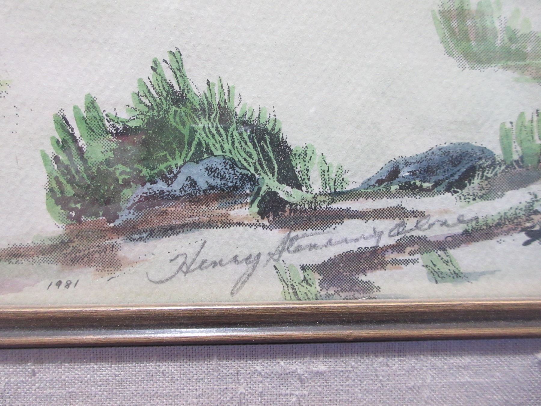 Framed Watercolor - "Blackfoot Moving Camp" by Henry Standing Alone - 29 1/2" x 17 1/4"