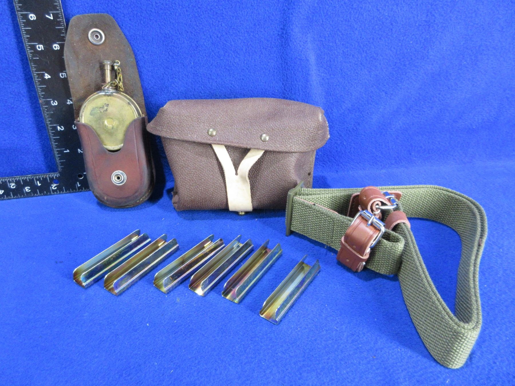 Mosin Nagant Ammo Pouch, SKS Oiler, Web Sling and 6 Mosin Nagant Stripper Clips