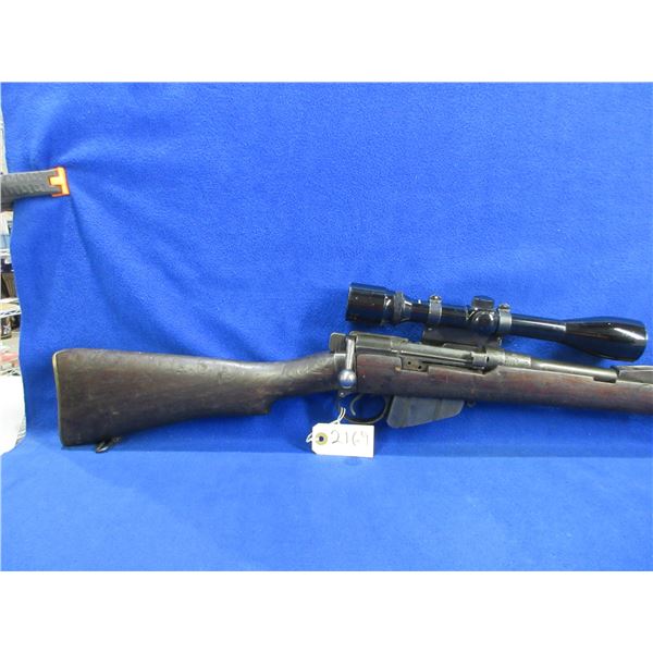 Non-Restricted - Lee Enfield No. 1 Mark III in 303 British - Marked "Crown over G.R, LSA Co. Ld, 1917 SHTLE III "This bolt action rifle with removable magazine appears to be in good to very good working order. Barrel is 25", rifling is good, bluing is turning grey, has front sight, missing rear sight but has Bushnell Banner 4x Wide Angle scope with side mount - duplex reticle - appears clear, full wood stock is good for age but has a crack on the left side of the forearm at muzzle, handguard and barrel band missing, brass butt plate good, comes with rear swivel. Ser #O17887