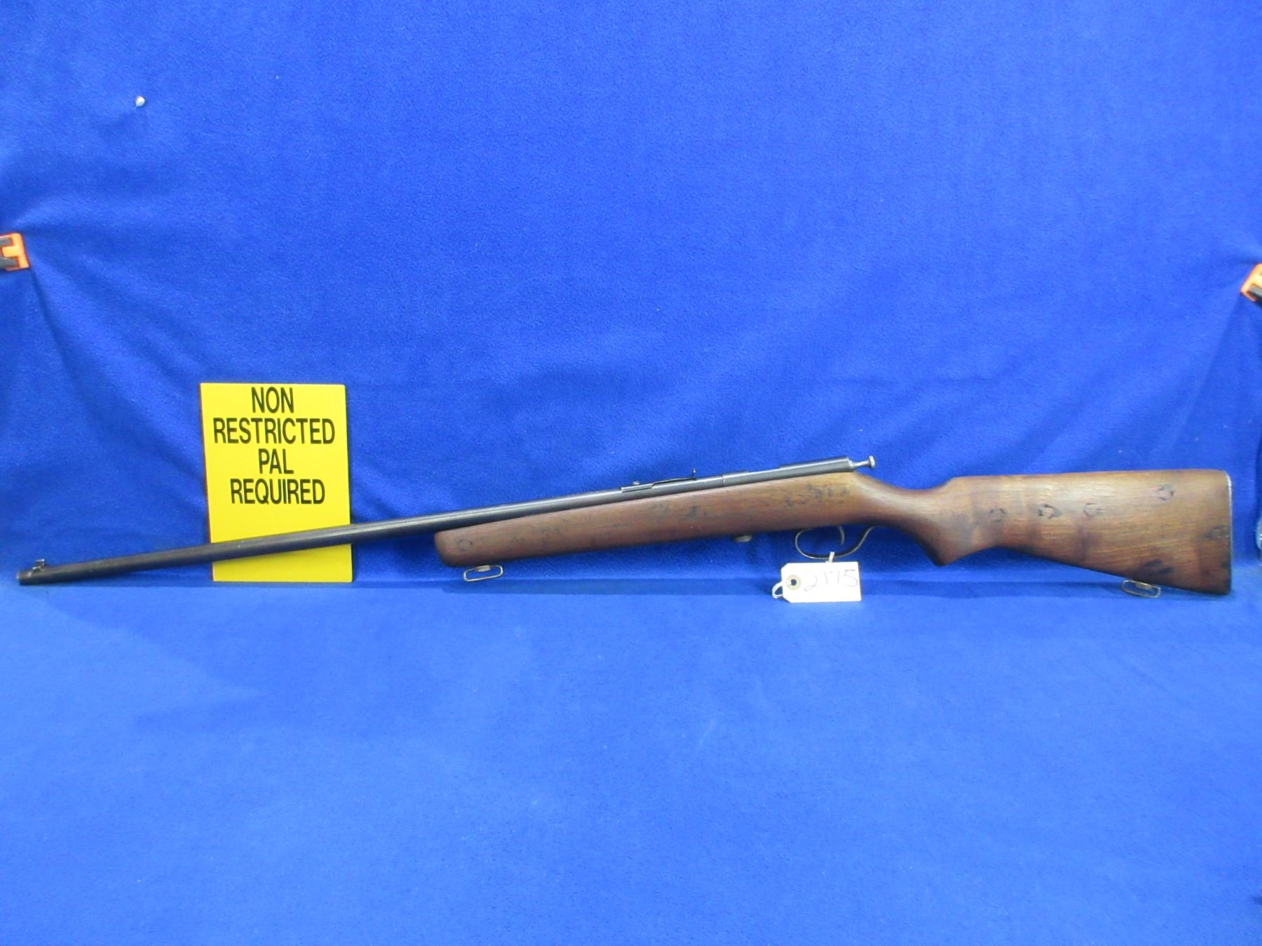 Non-Restricted - Cooey Ranger in 22 S/L/LR - This single shot bolt action rifle appears to be in good working order. Barrel is 27", rifling is good to very good, bluing is good with some light scratches, has both sights but rear sight missing ramp, stock is good with usage marks, metal butt plate good, comes with swivels. Ser #None
