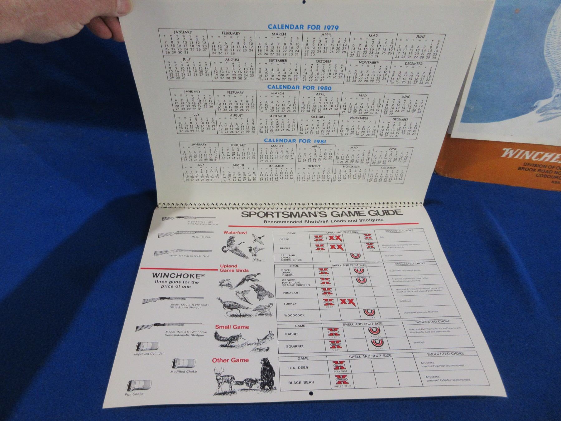 Lot 2190 2 Vintage Winchester Game Calendars - 1980 and 1981