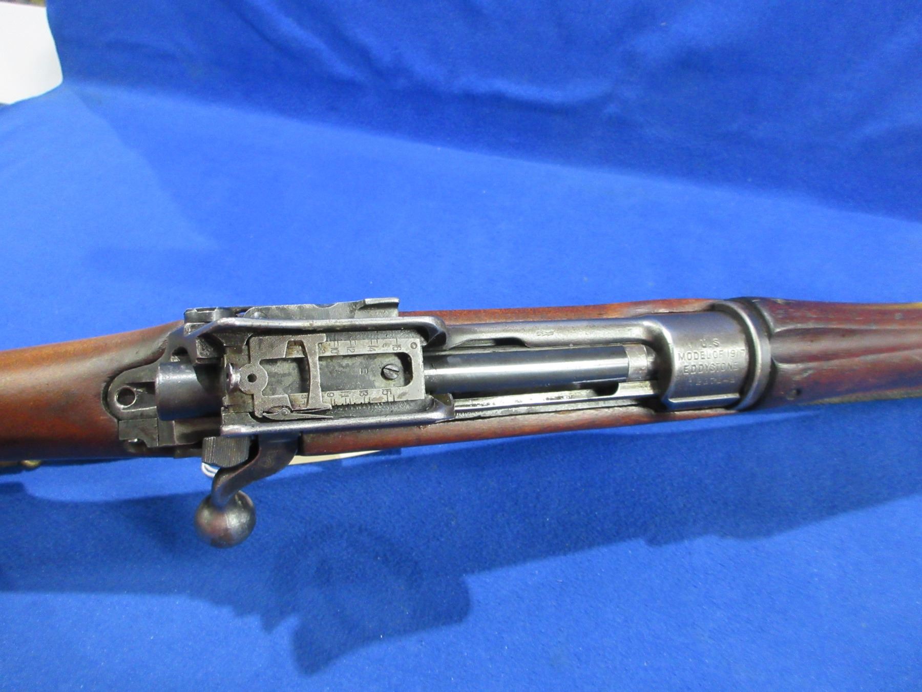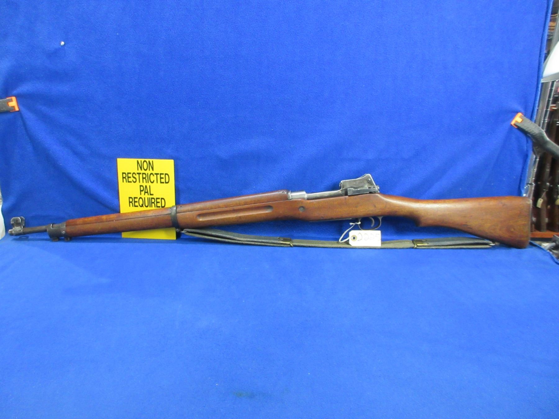 Non-Restricted - Lee Enfield P17 in 30-06 Sprg - Marked "US Model of 1917 Eddystone". This bolt action rifle with floorplate magazine is in good condition and appears to be in good to very good working order. Barrel is 26", rifling is good but dark, bluing is turning grey, has both sights, full wood stock is good for age with many usage marks, metal butt plate good, comes with swivels and sling. Ser #1237649